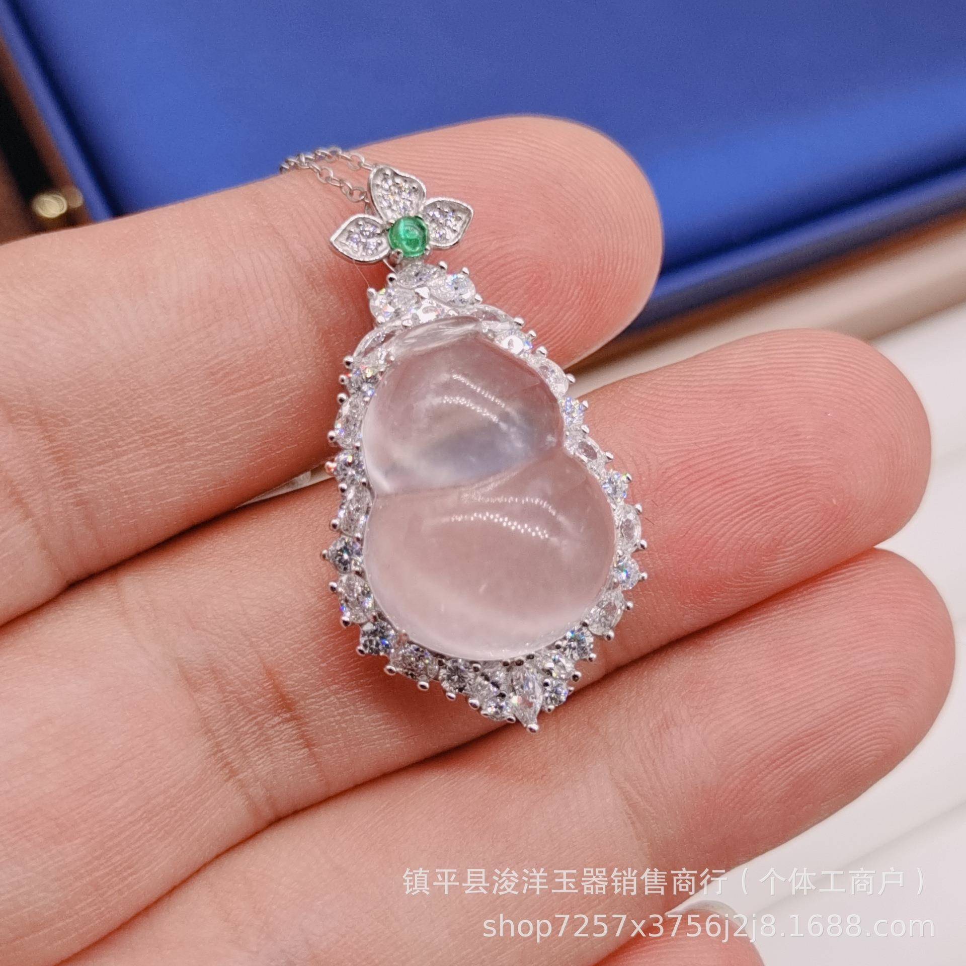 本命年新中式水沫玉葫芦吊坠925纯银锆石镶嵌轻奢时尚玉石项链礼