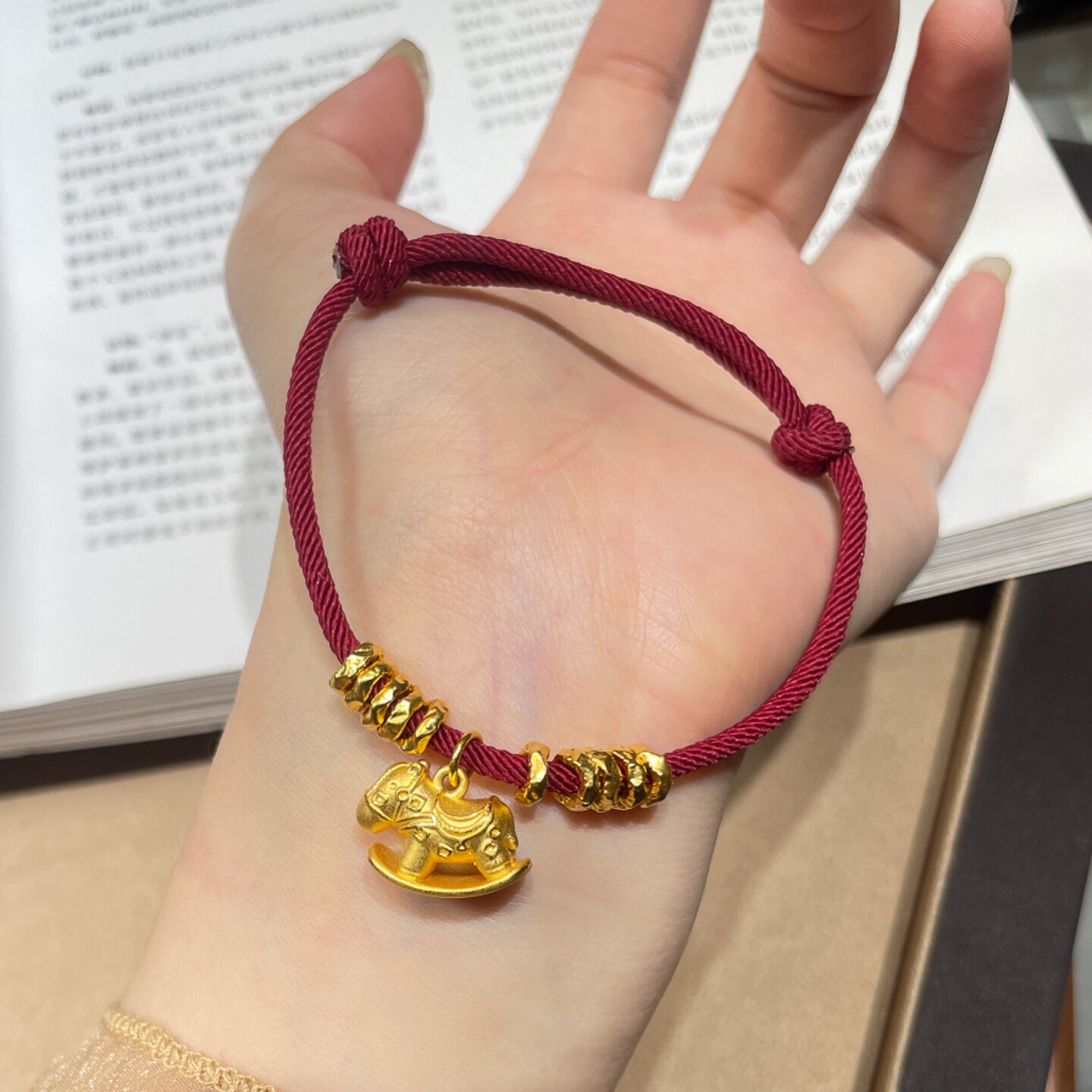 S925纯银马上有钱立体小马红色编绳手链女轻奢高级感手饰精致小巧