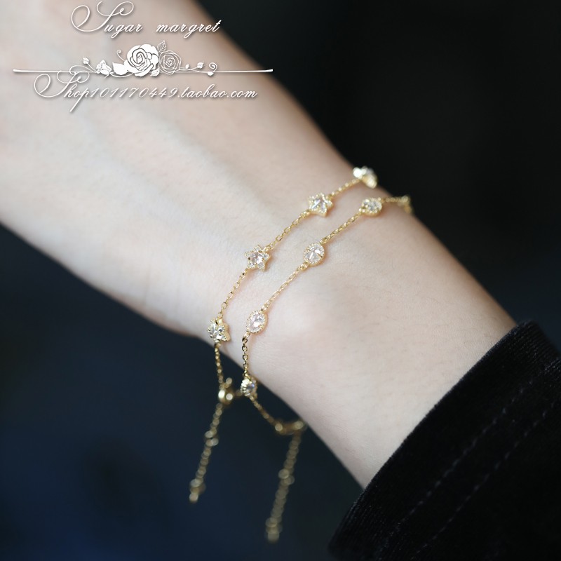 银河倾泻。星空般闪耀晶透 梦想成真系列锆石双面戴925银镀金手链