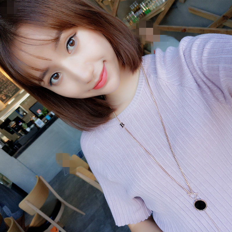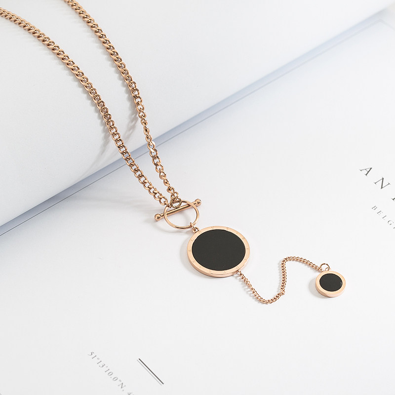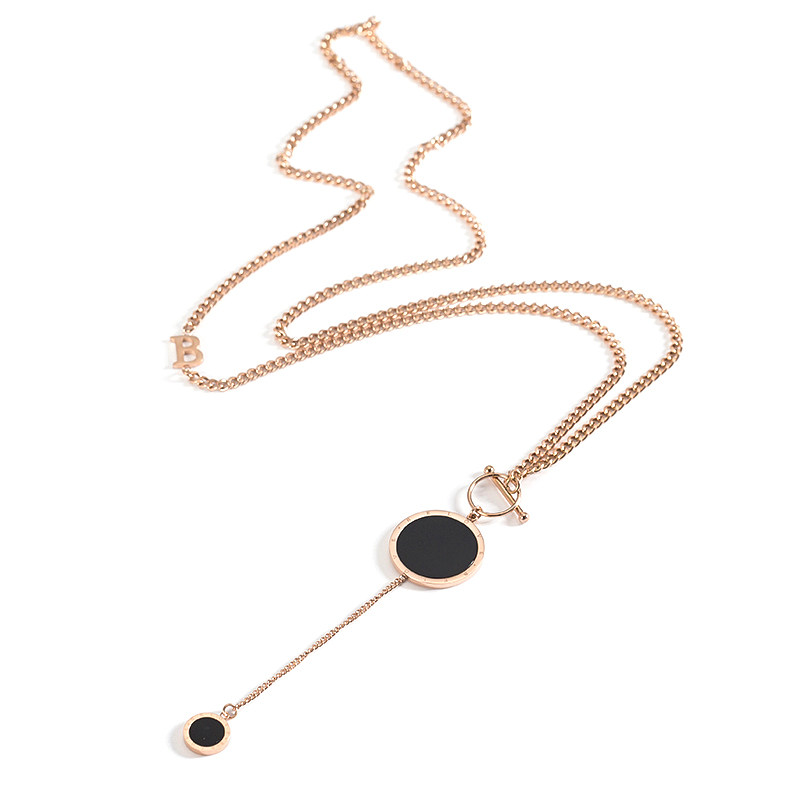 黑色圆点女毛衣链 原创设计长款项链钛钢 网红圆圈马鞭链饰品