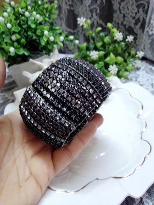 小众全新波西米亚蓝色黑色褐色彩色水钻手镯宽大款夸张手链复古