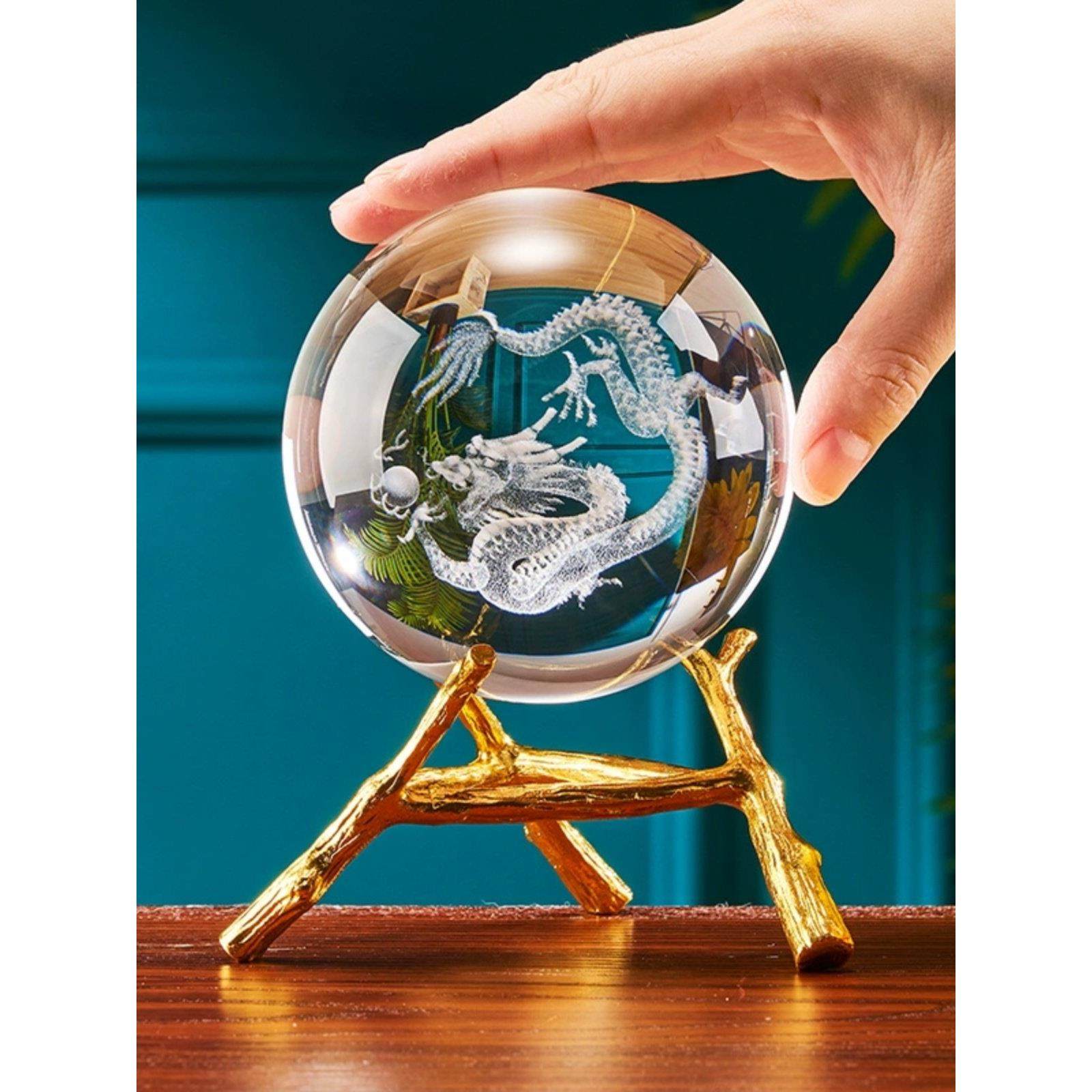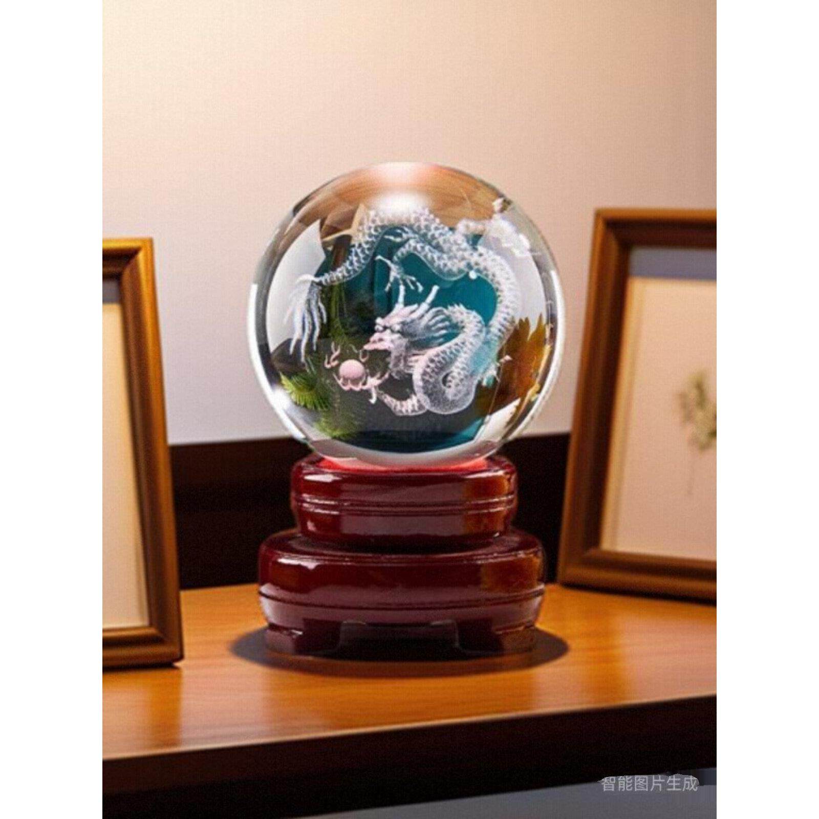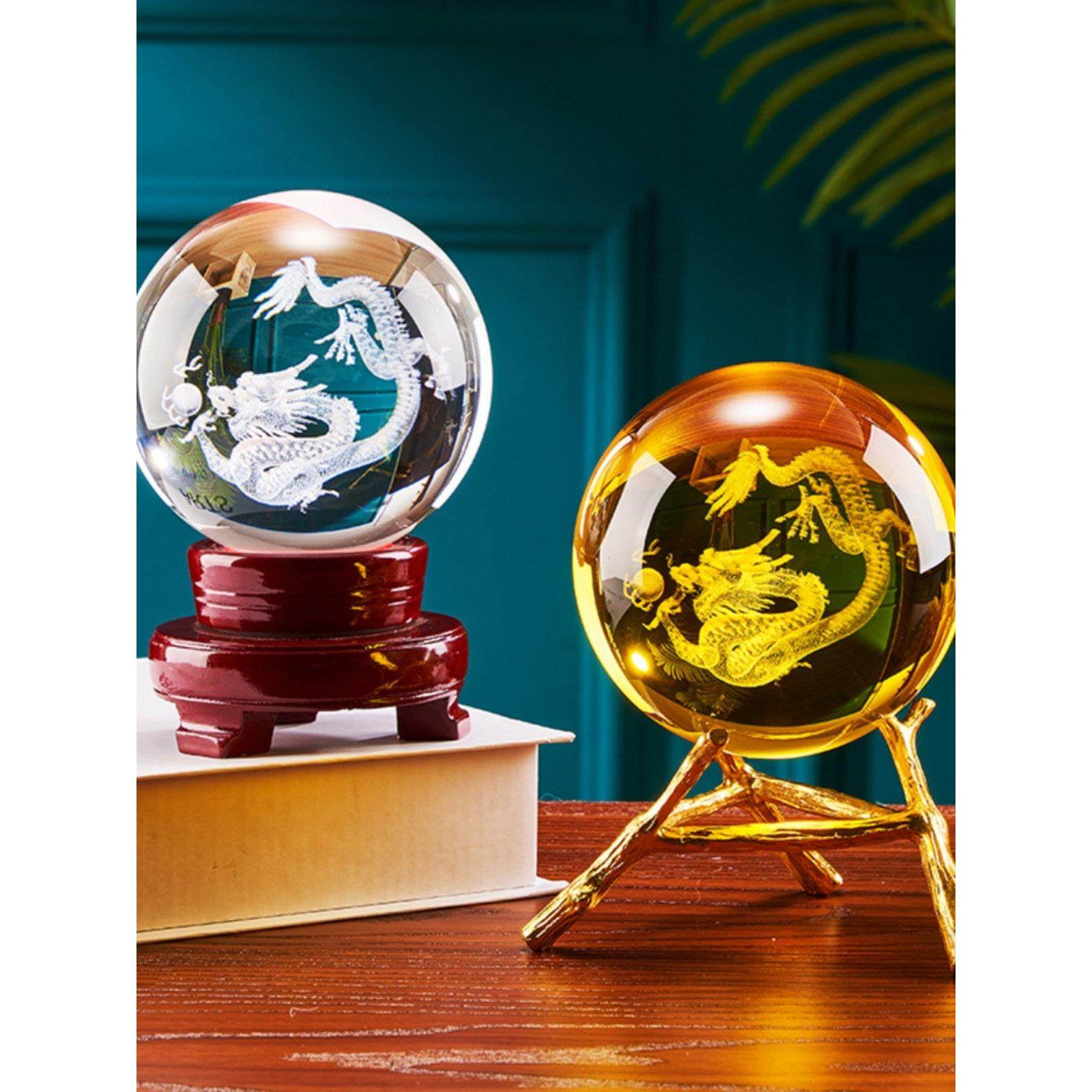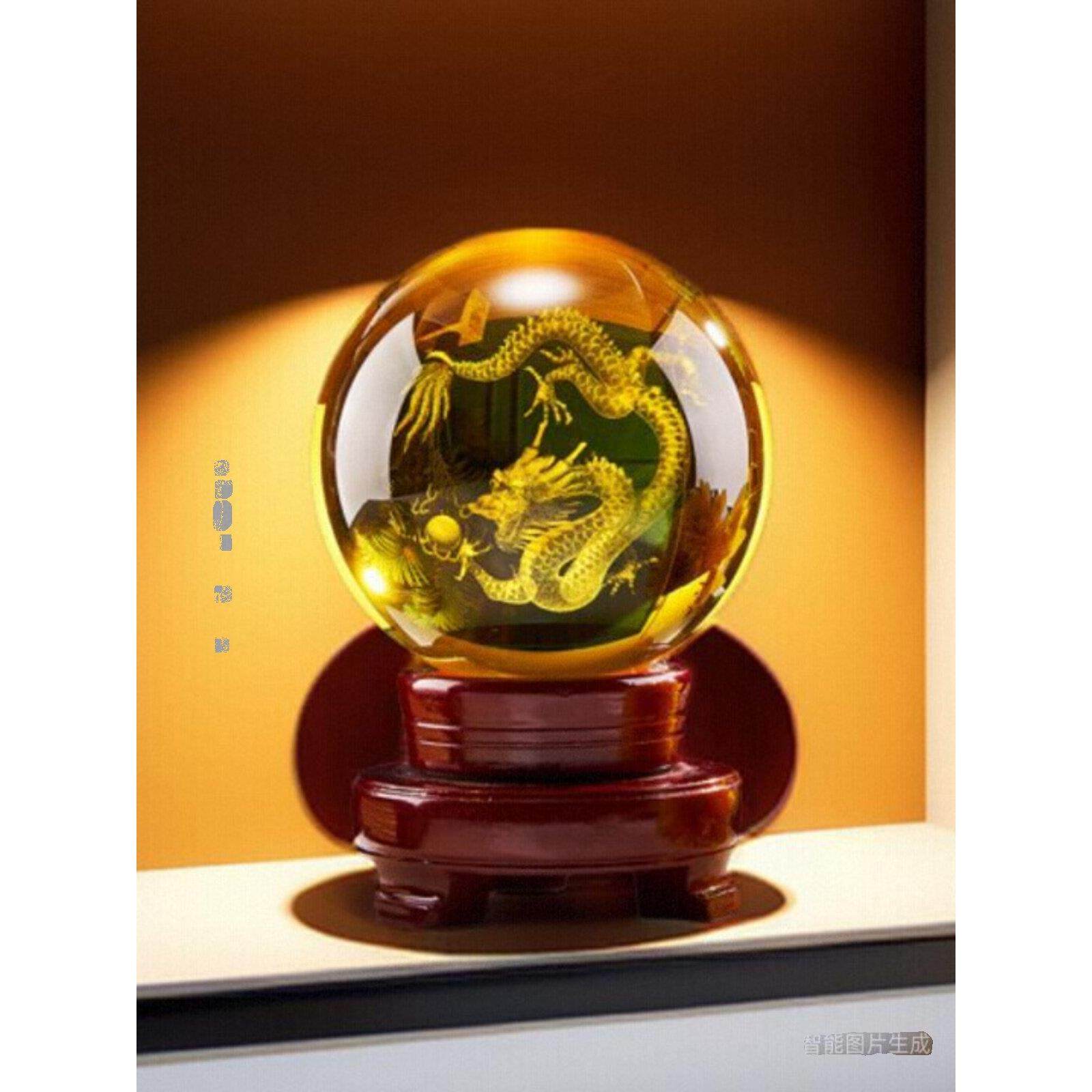 水晶球龙图案摆件黄色球内雕龙办公桌生肖龙摆设祥辟火神龙青龙球
