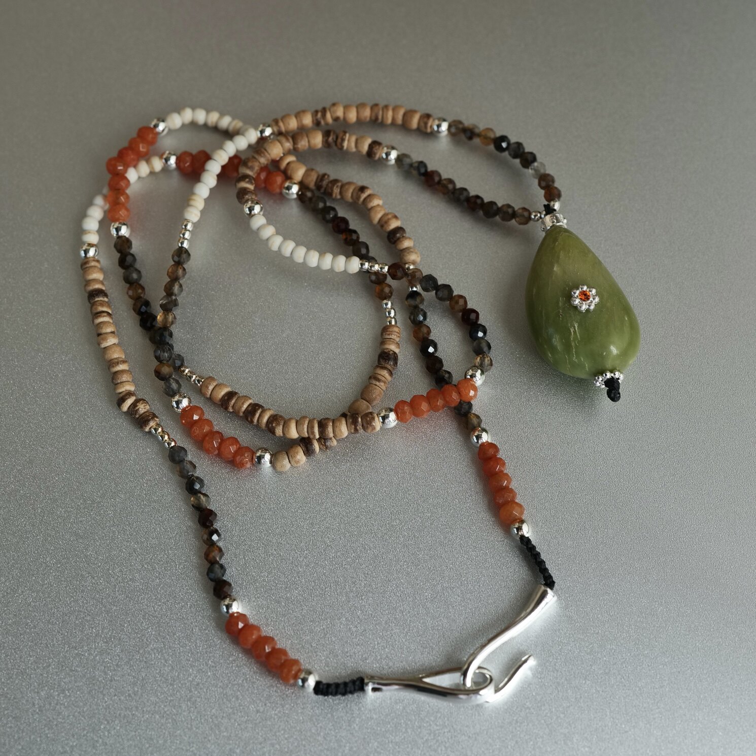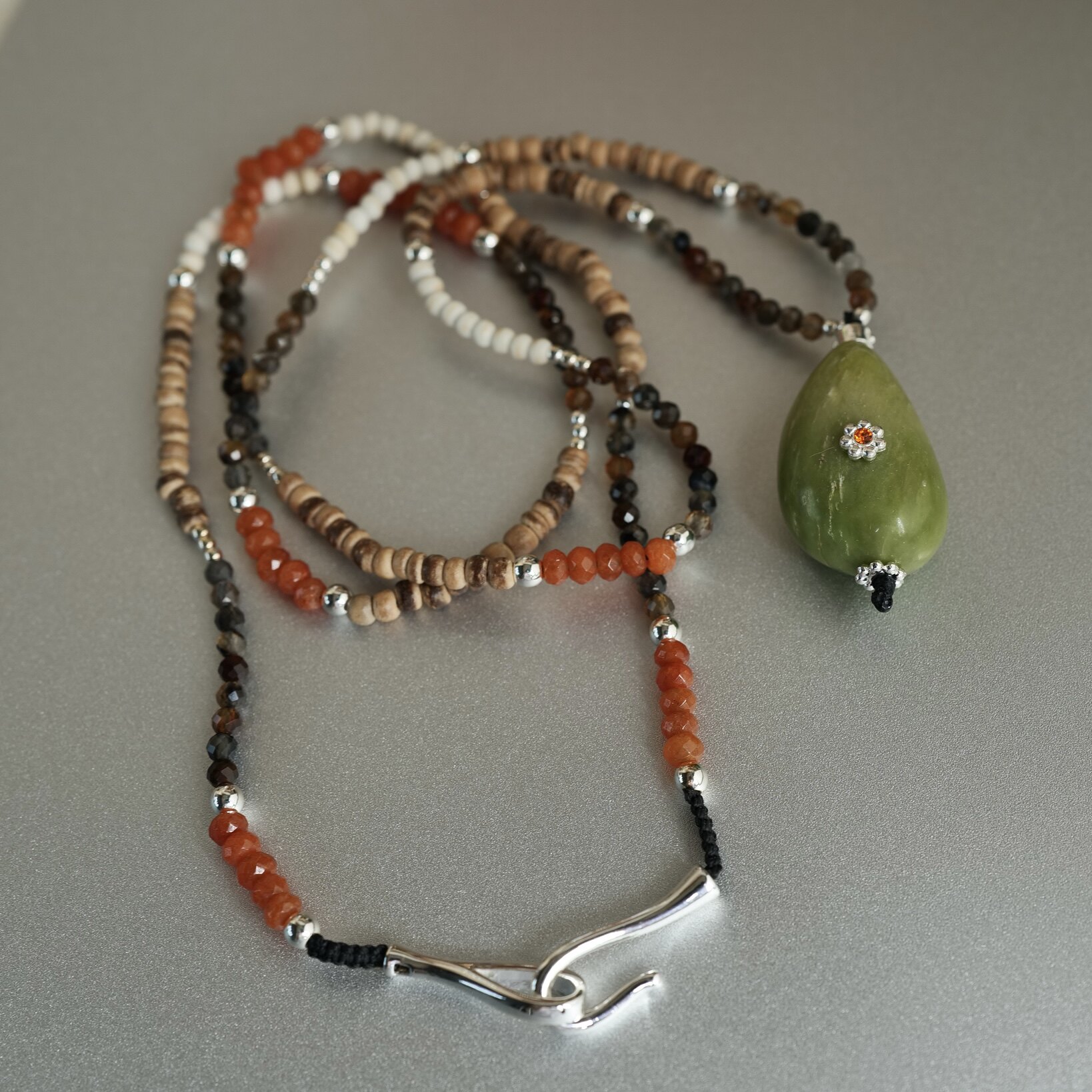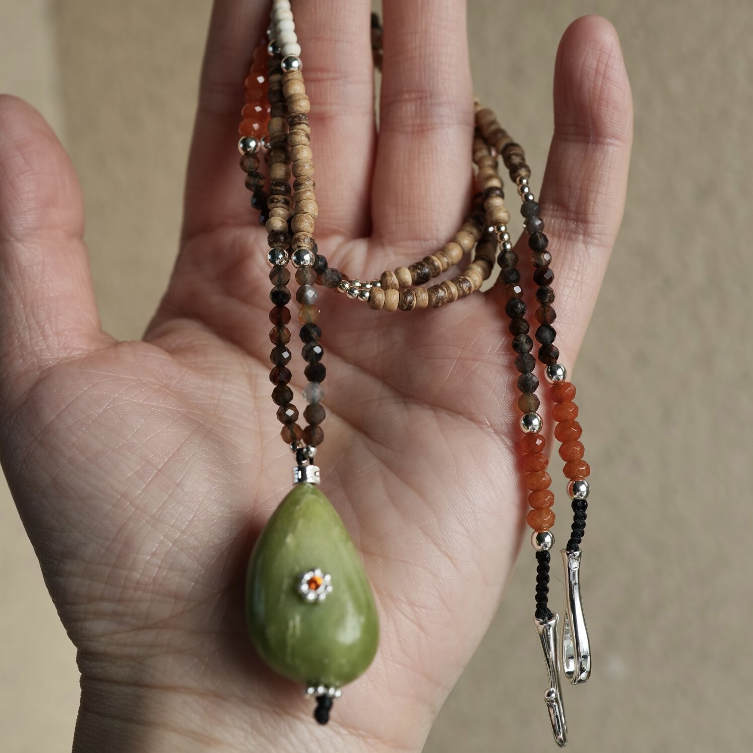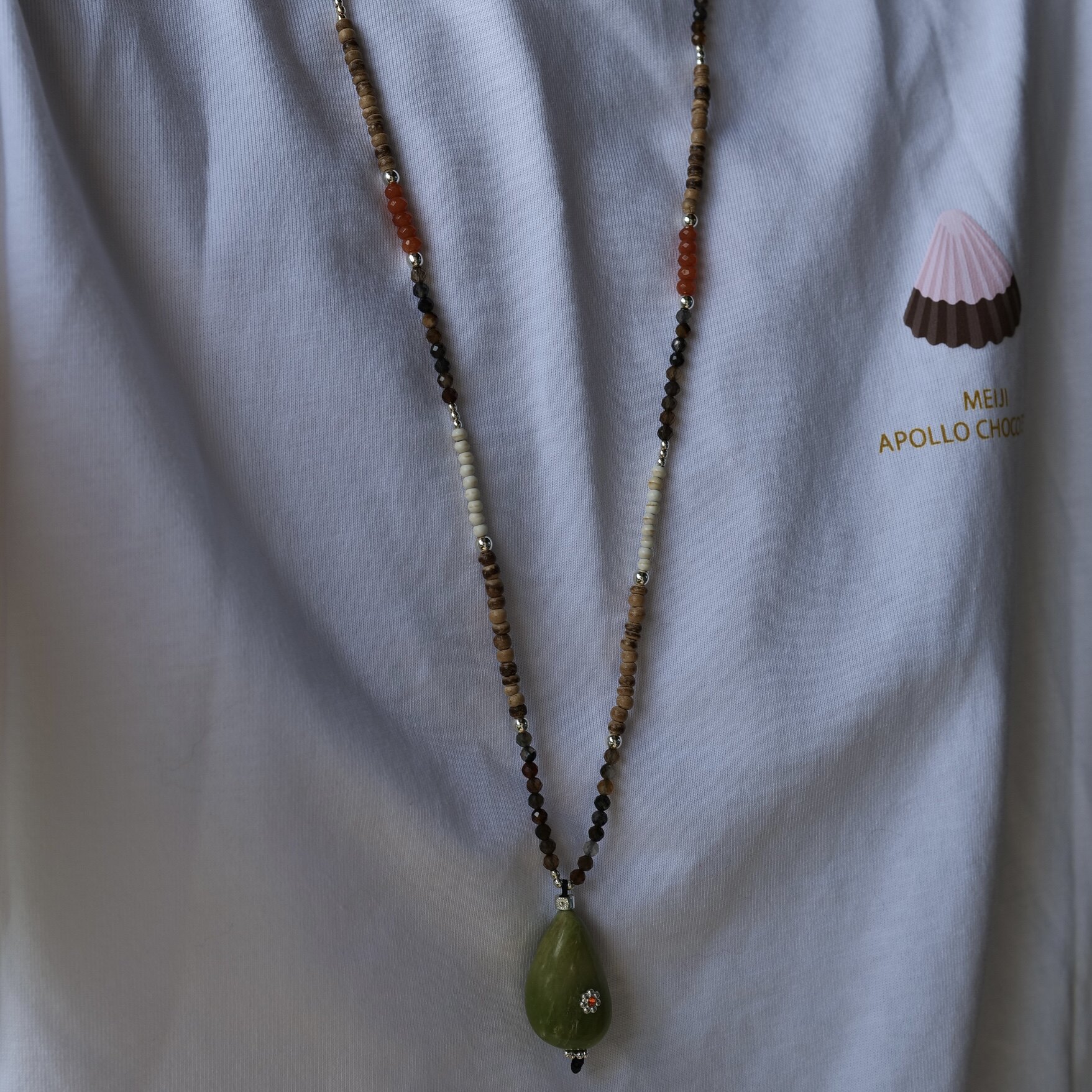 一颗牛油果。天然石椰壳绿色石吊坠长款项链随性时髦松弛感个性