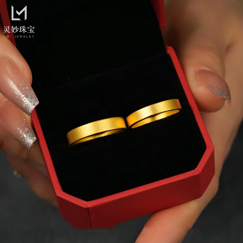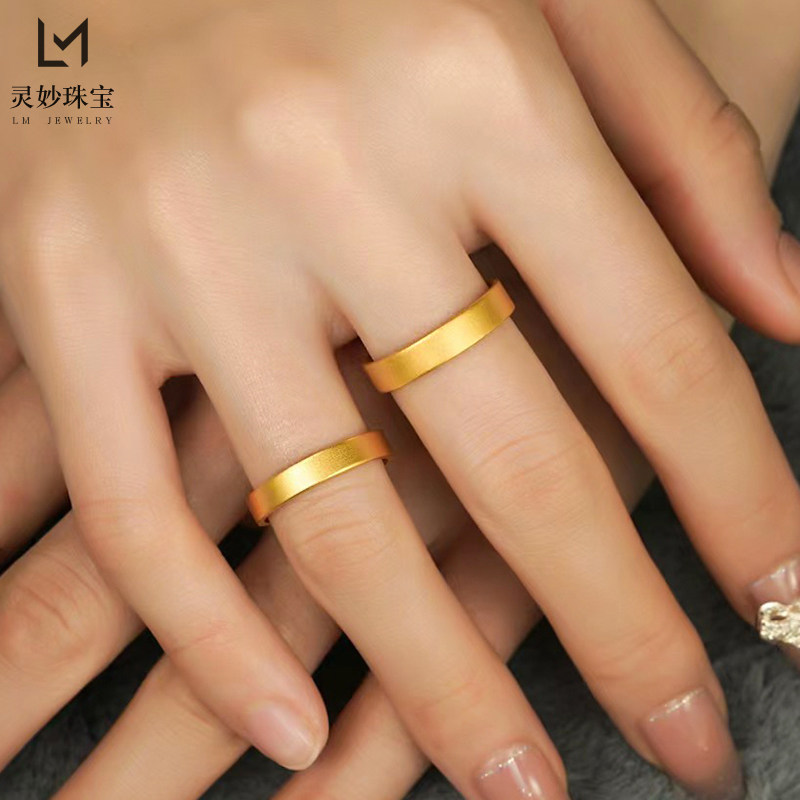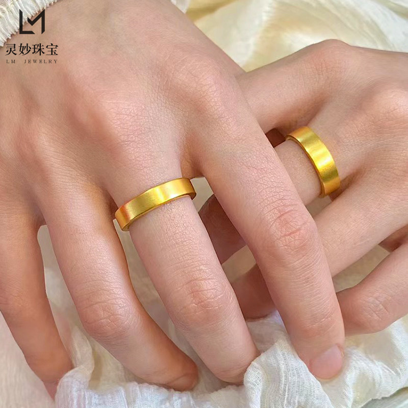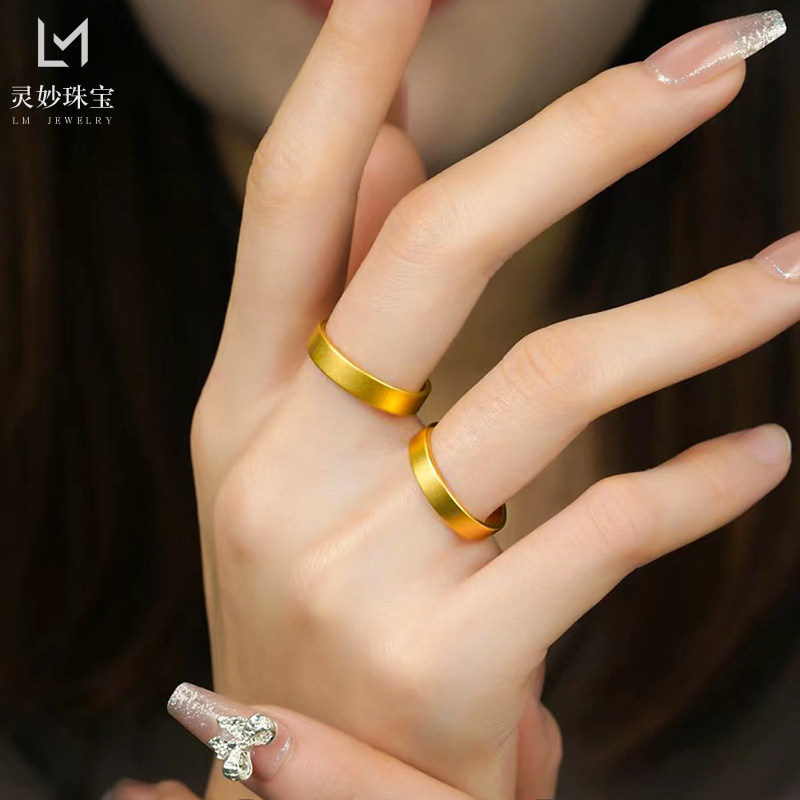 金店同款古法沙金999素圈平安无事素圈戒指男女款对戒结婚素圈方