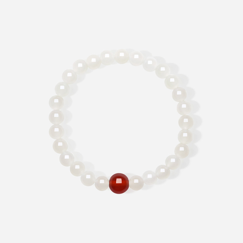 周六福天然和田白玉玛瑙荔枝冻冻手串女款首饰玉石佳礼新年礼物