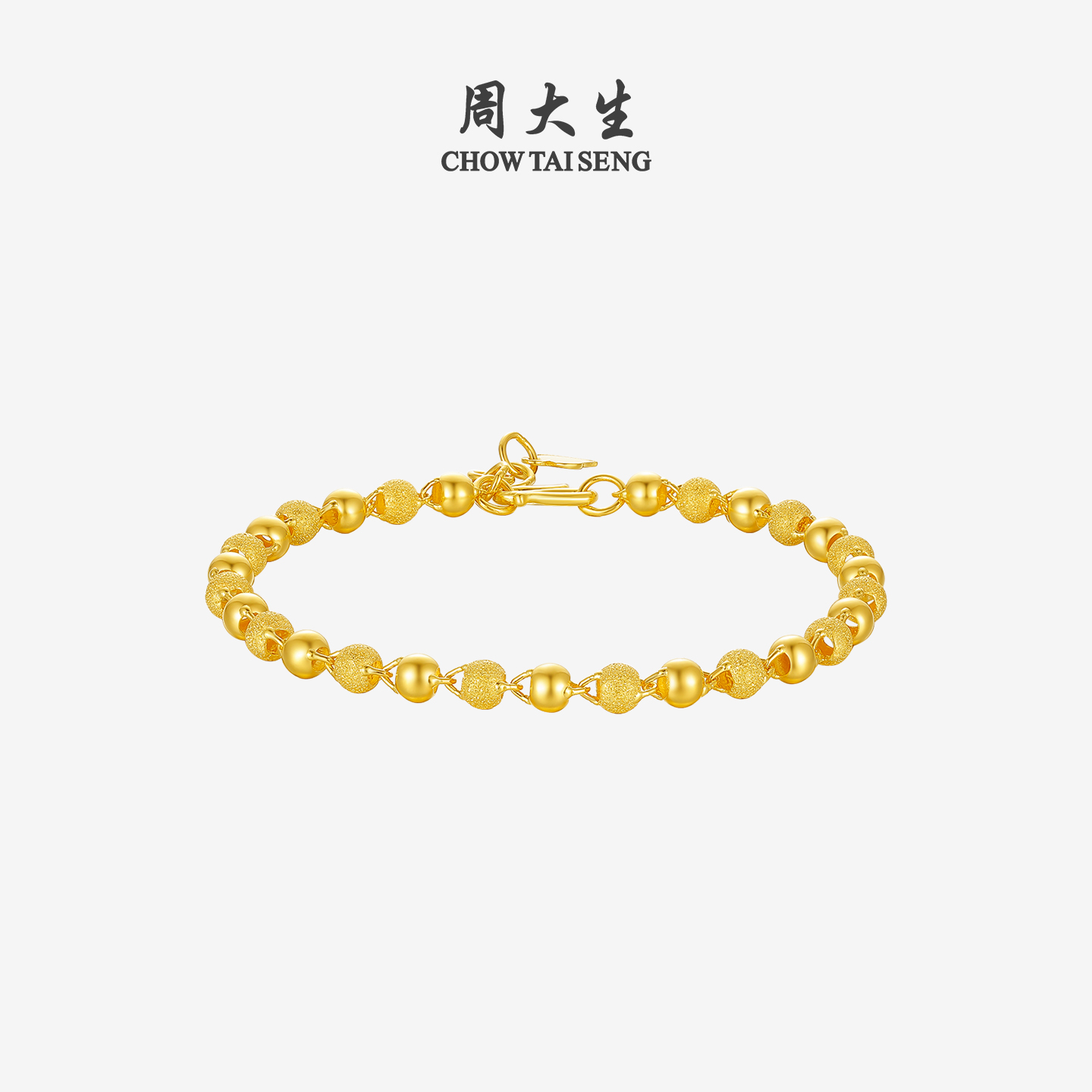 周大生黄金手链女计价足金光砂珠金链子转运珠手串圣诞礼物送女友