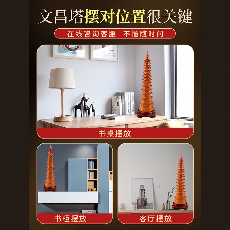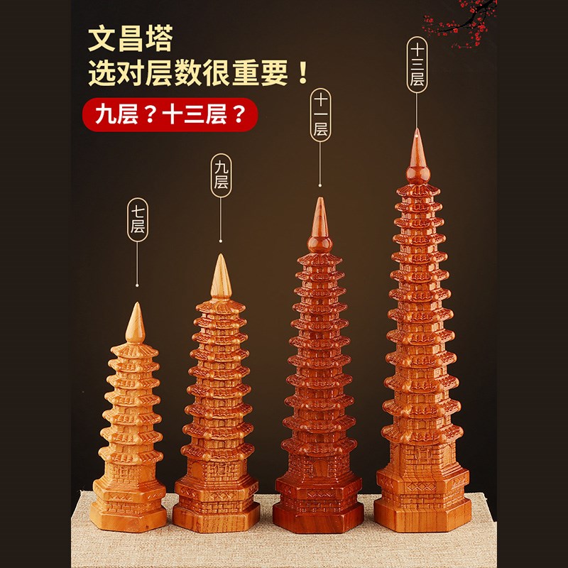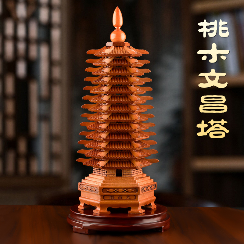 桃木文昌塔摆件层9层13层w木质雕纹文昌塔办公室书房书桌工艺礼品