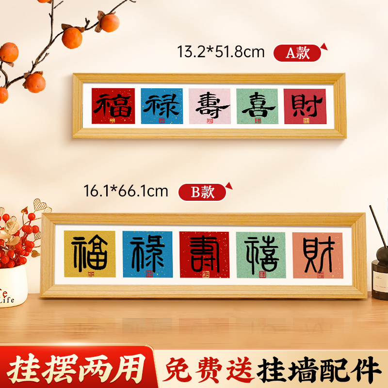 新年书法摆件福禄寿喜财装饰画框客厅摆台新中式高级感创意礼物送