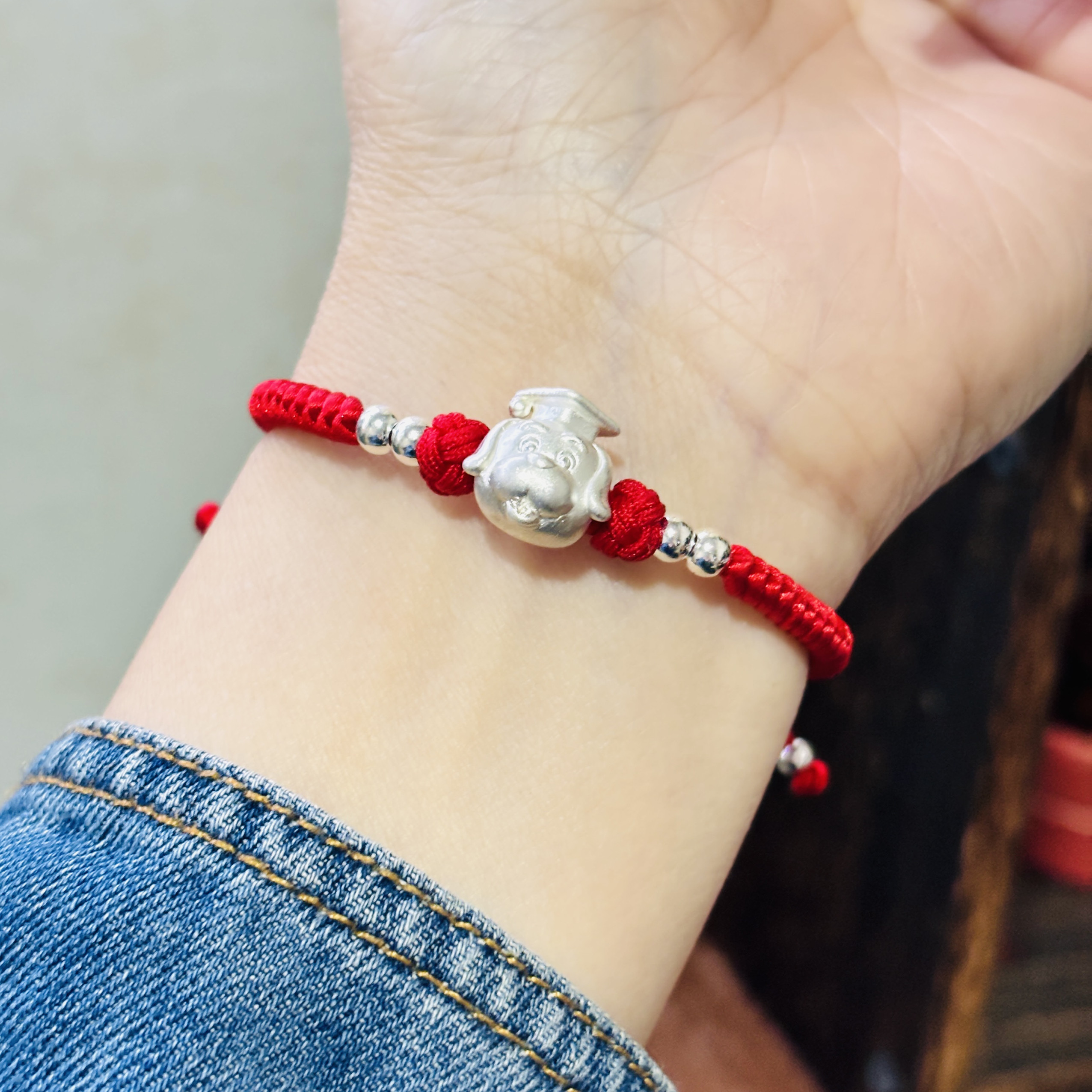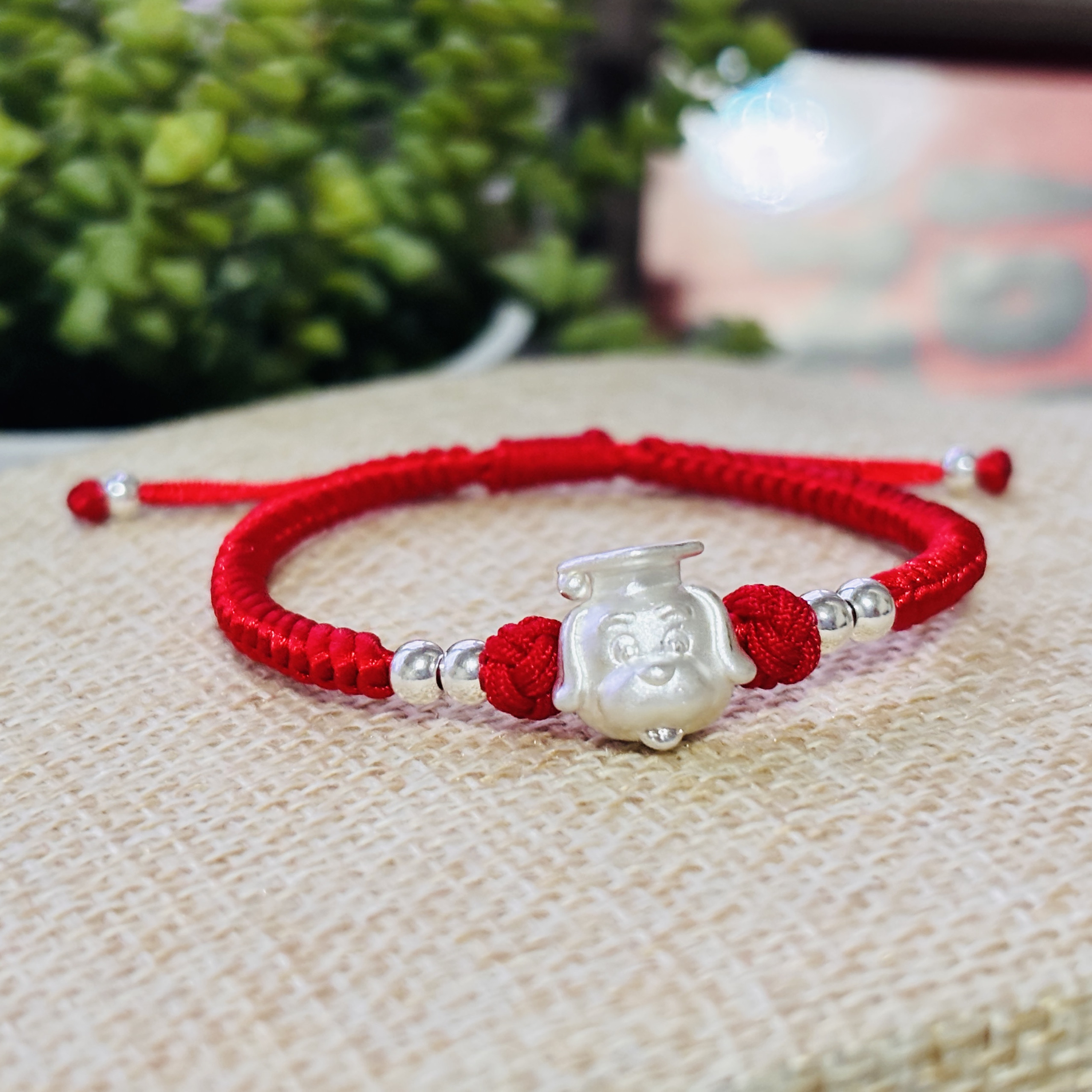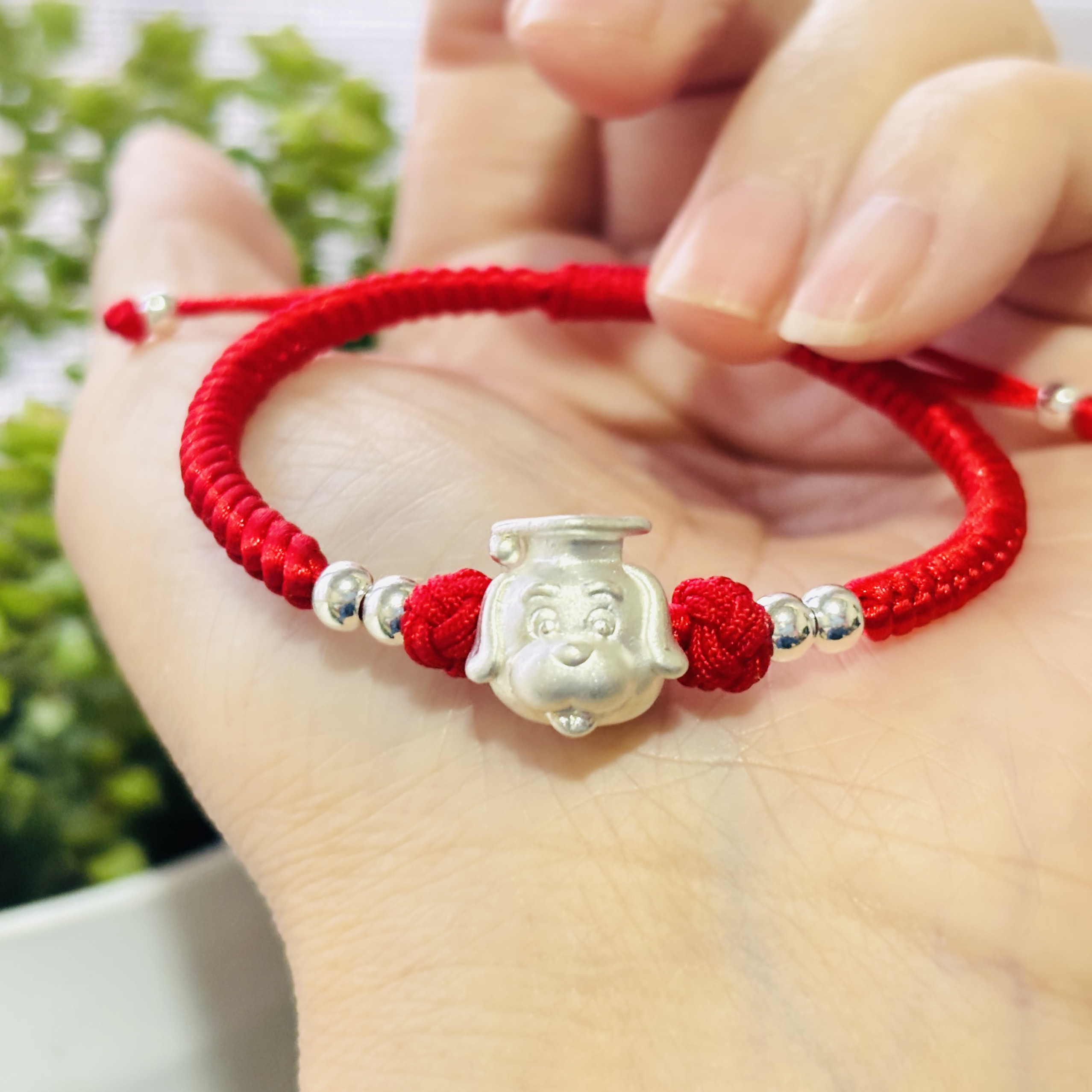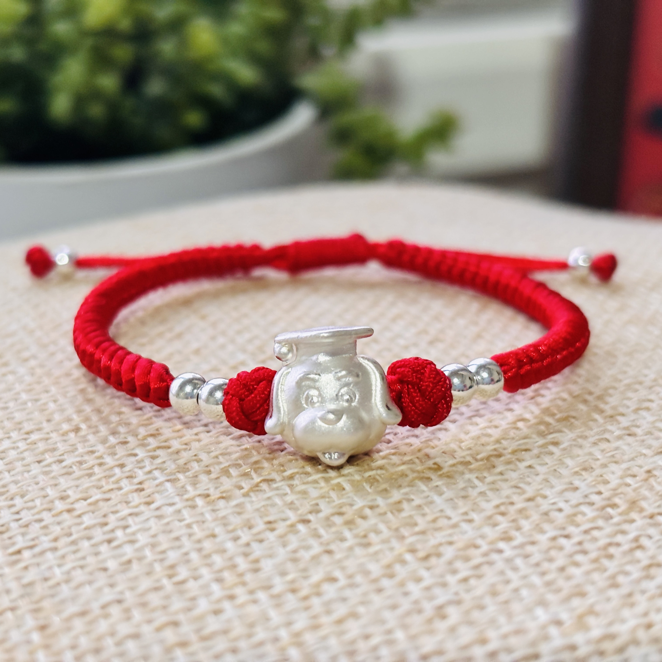 999足银 博士帽 生肖狗 本命年编织手绳儿童男女款礼物