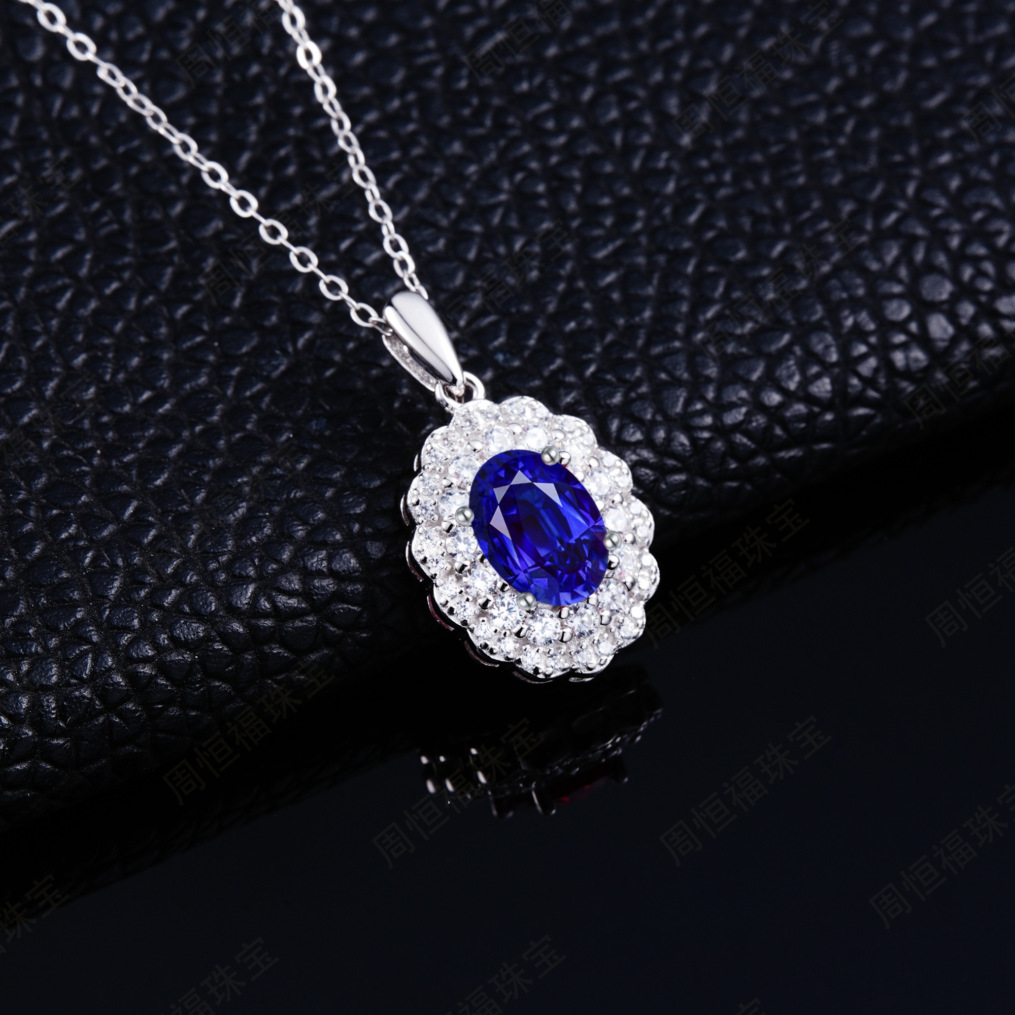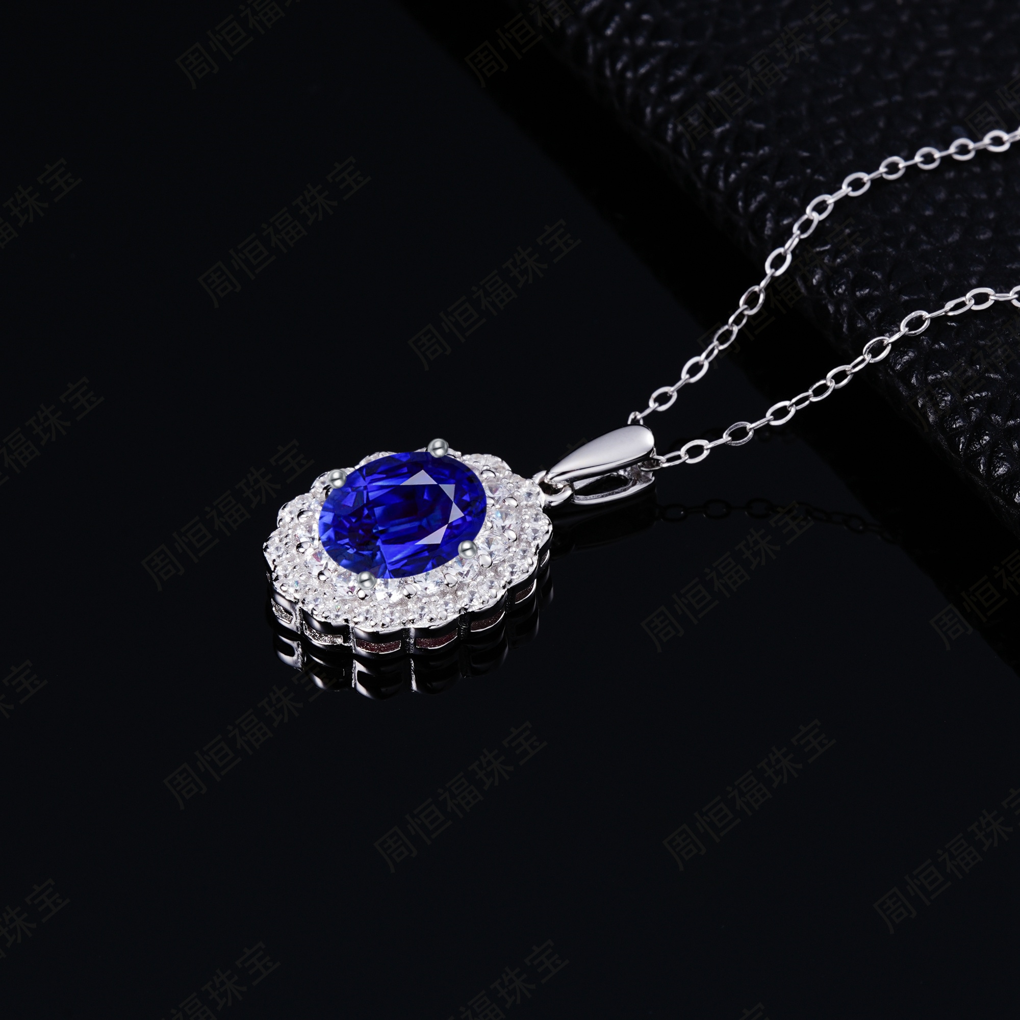 KoyoomeS925银培育皇家蓝宝石项链女椭圆镶满钻精致通勤小众