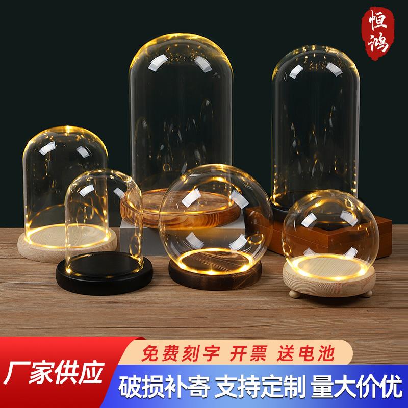 发光玻璃罩透明展示盒人偶圣诞树积木手模桌面摆件手办带灯防尘罩