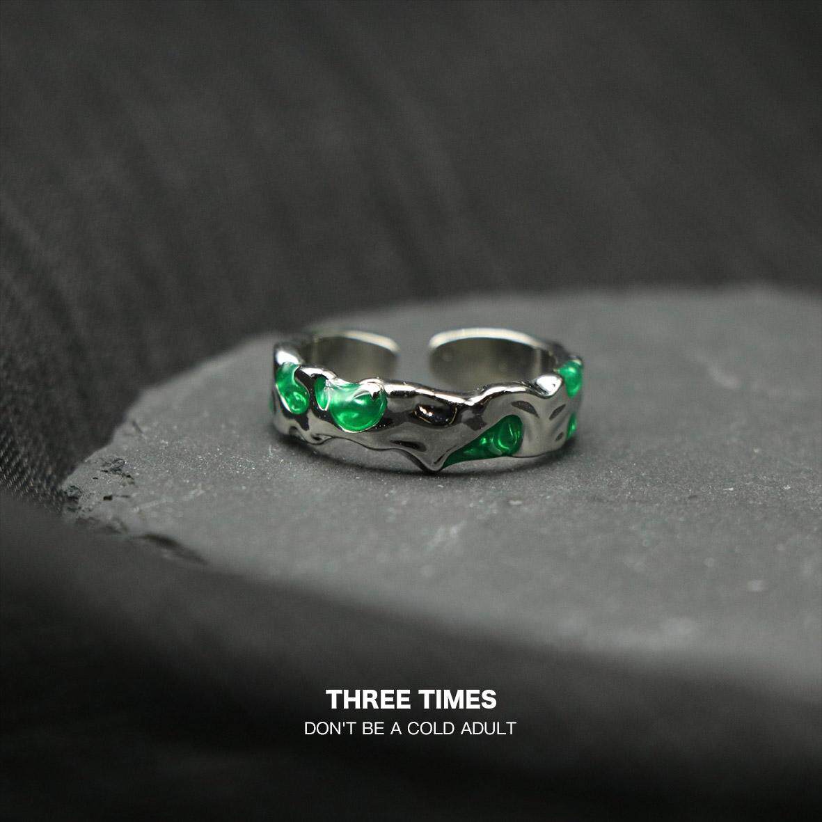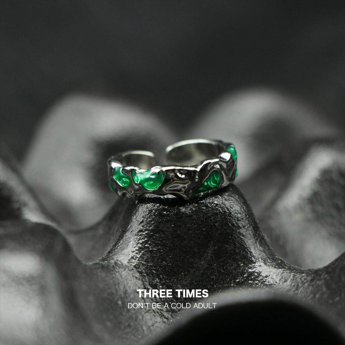 【THREE TIMES】绿色戒指小众设计冷淡风斯莱特林蛇院食指戒