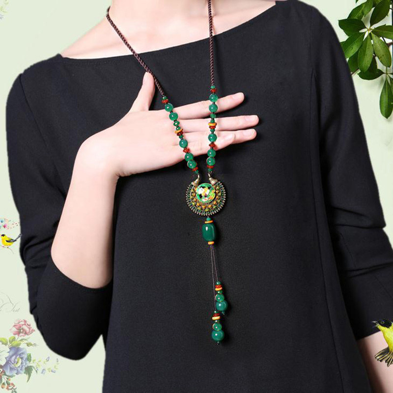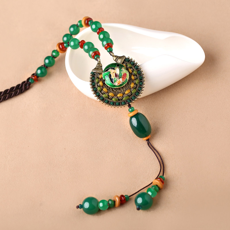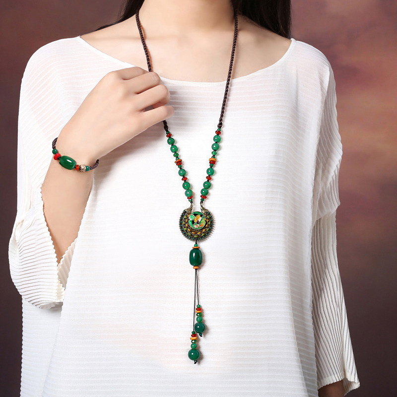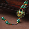 民族风长款项链女古典旗袍毛衣链吊坠绿色复古风百搭秋冬配饰品