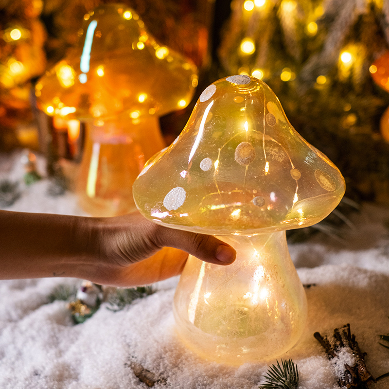 圣诞节蘑菇灯小夜灯桌面玻璃摆件闪亮发光场景礼物儿童房装饰