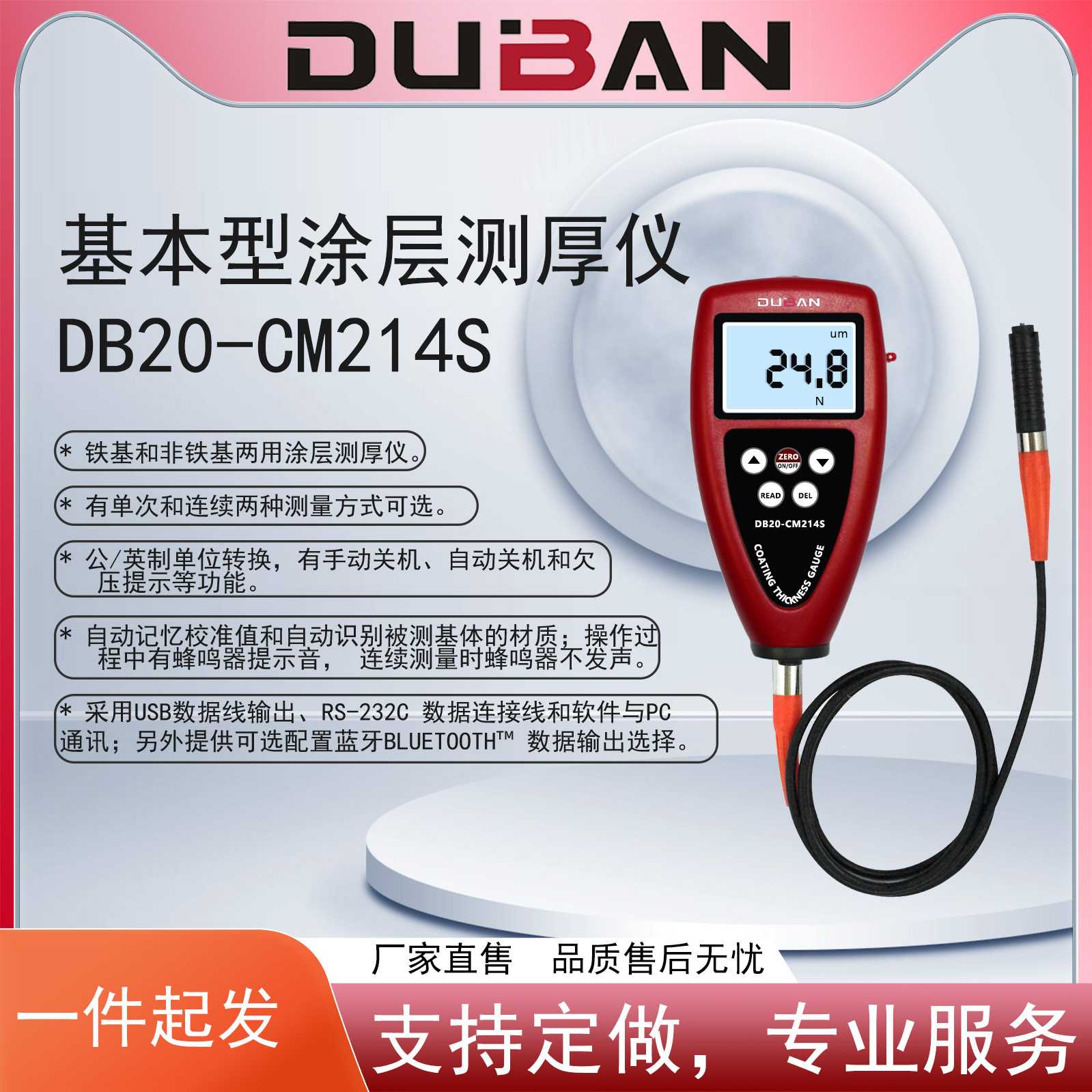 统计型涂层测厚仪DB20-CM214S分体式设计,提供多种测量探头选择