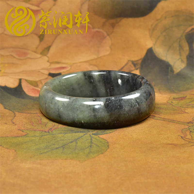 紫润轩新疆和田玉满皮水墨青花籽料手镯60MM随形满皮枣红皮传家级