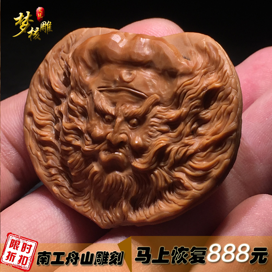 文玩纯手工雕刻扁核桃钟馗单粒核桃雕刻手把件吊坠非橄榄核雕刻