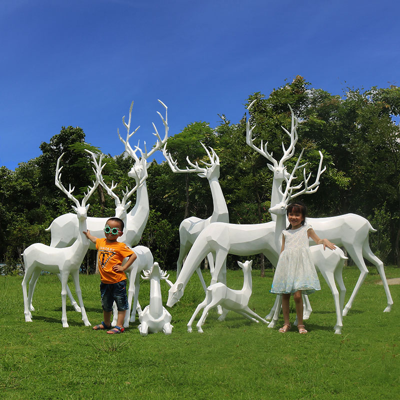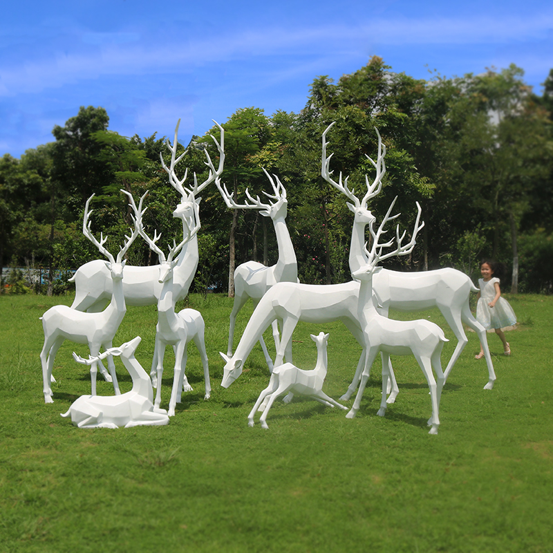 户外大型玻璃钢几何梅花鹿雕塑园林景观仿真动物麋鹿装饰摆件定制