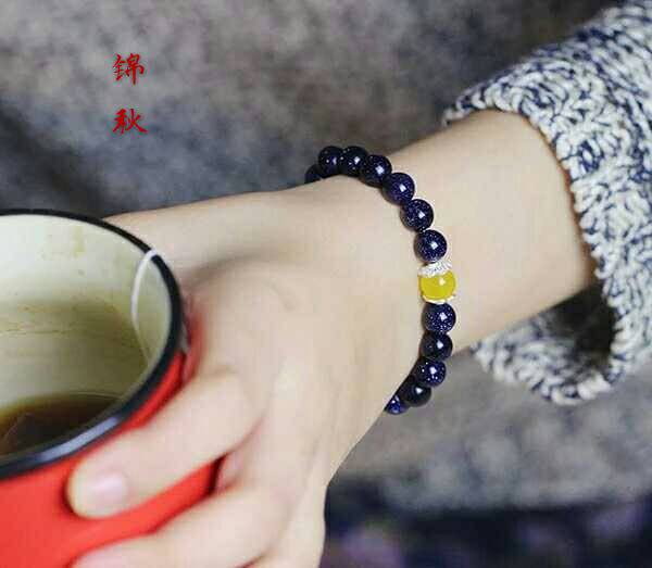 「阔别」蓝砂石青金石手串手链纯银花托手镯