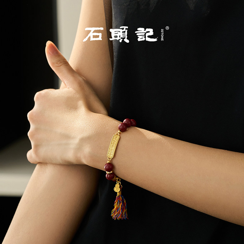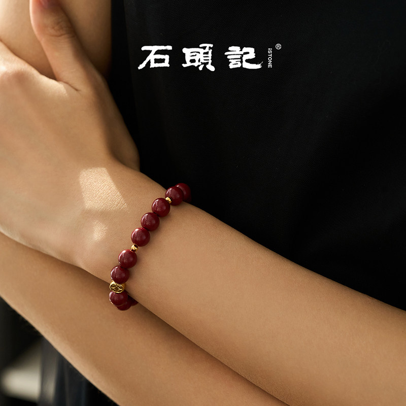 iSTONE/石头记本命年朱砂手串红色串珠手链女款新款五路财神手饰