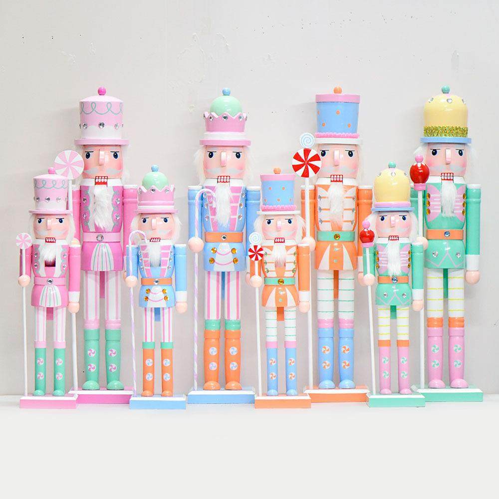北欧马卡龙色胡桃夹子木偶士兵摆件卡通儿童套装饰品新年耶诞节礼