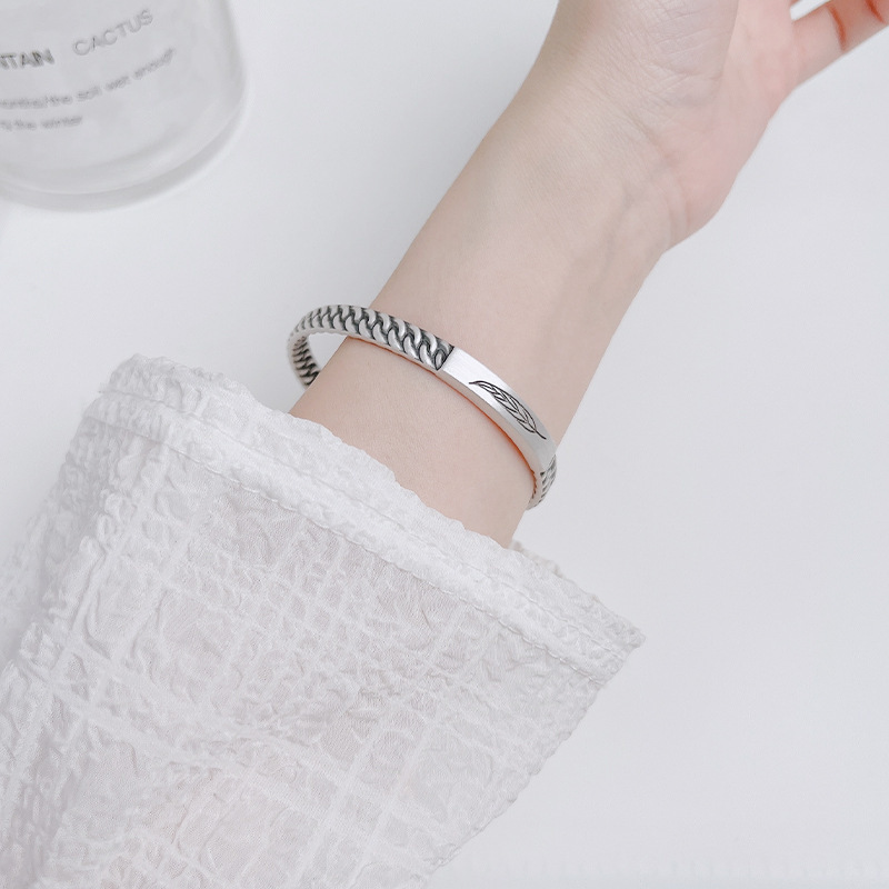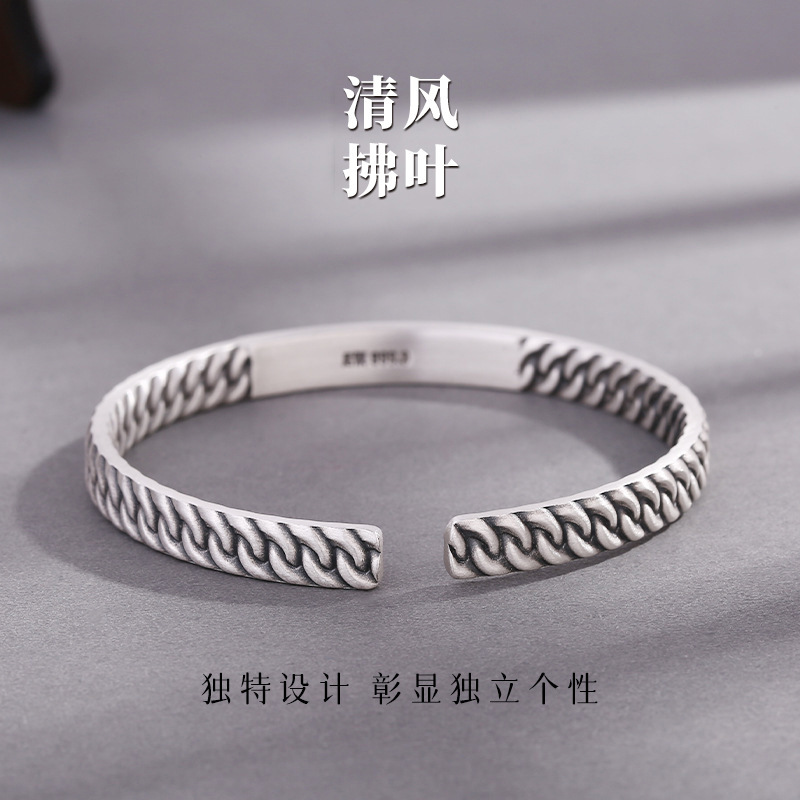 足9999手镯女竹报平安实心麻花泰镯子新款七夕礼物送女友银纯银