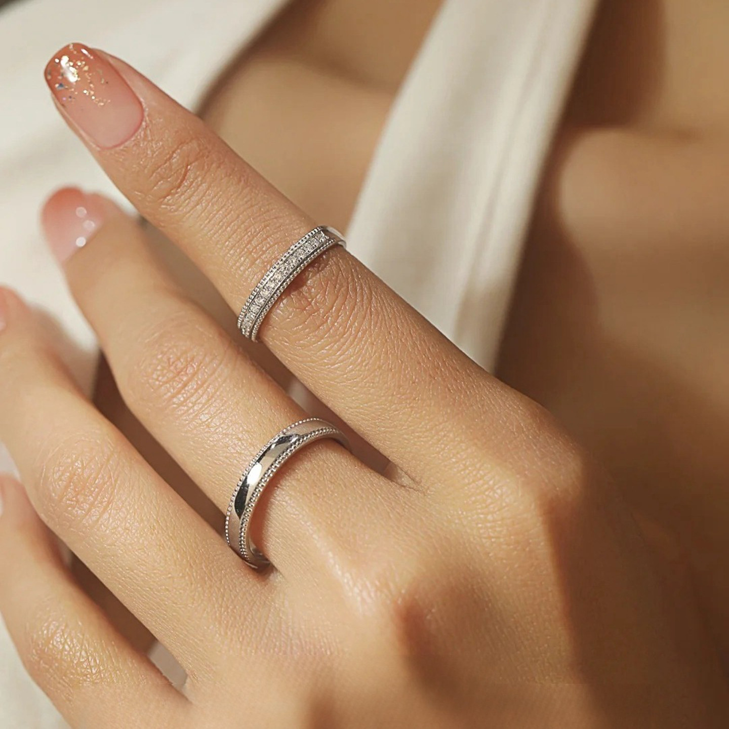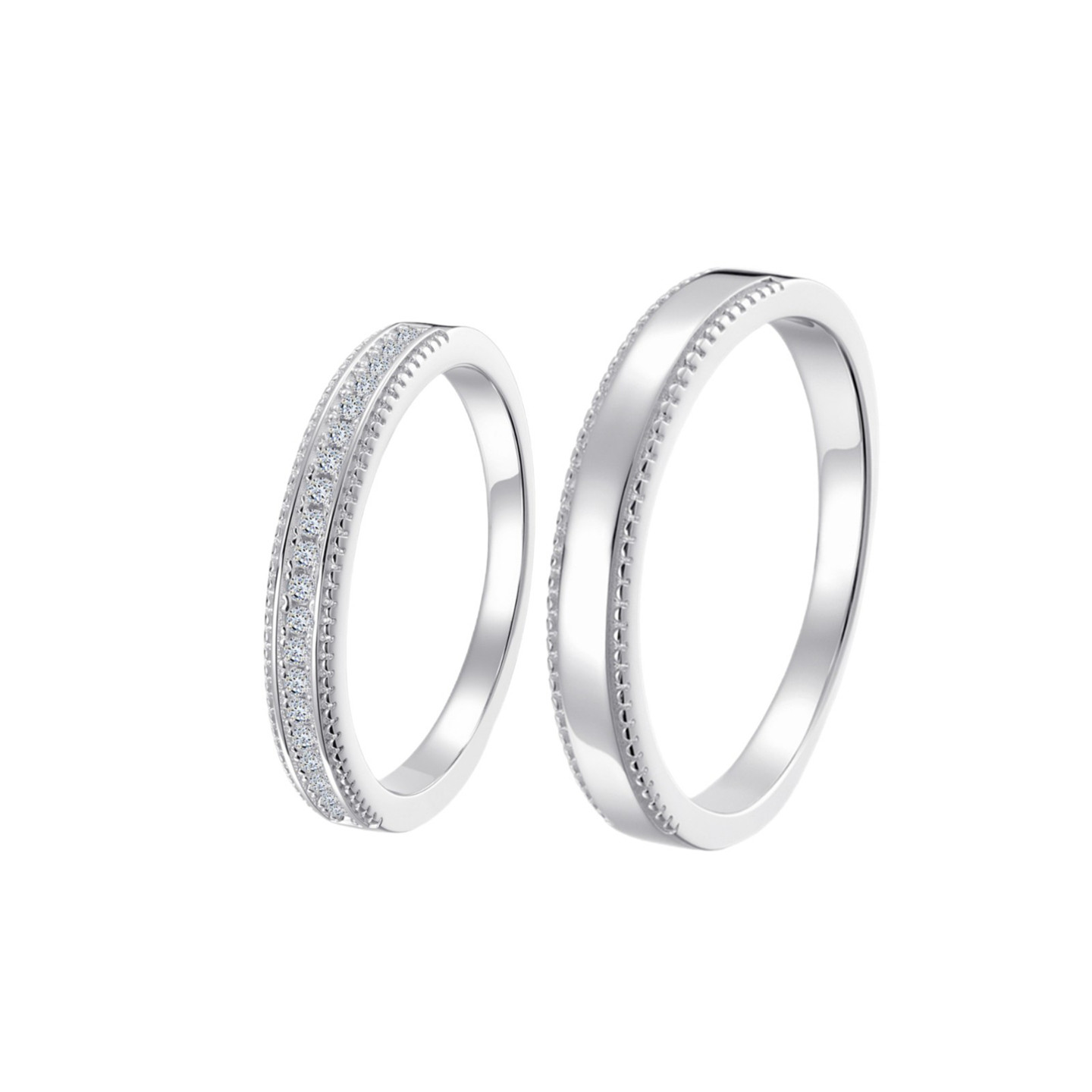 新款莫桑石纯银珠边情侣戒指一对活闭口对戒求结婚戒排戒厂家直销