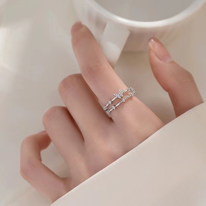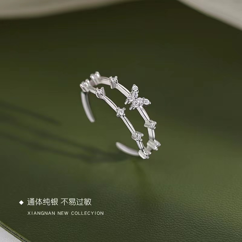 纯银双层蝴蝶戒指2023年新款潮洋气轻奢高级设计感开口戒圈指环女