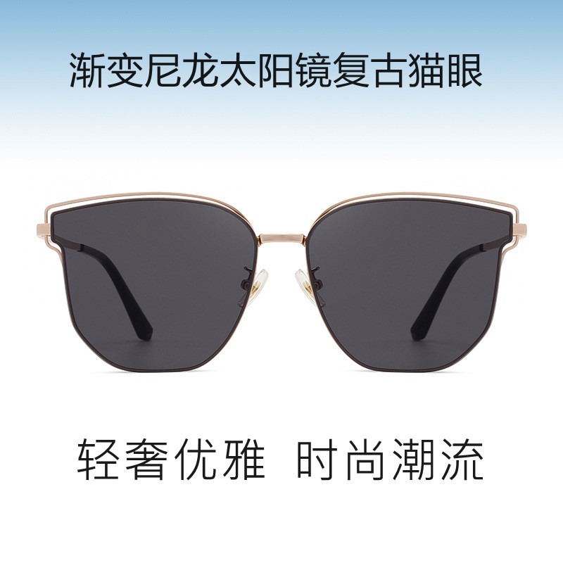 2024新款时尚渐变尼龙太阳镜复古猫眼女金属墨镜个性风潮素颜眼镜