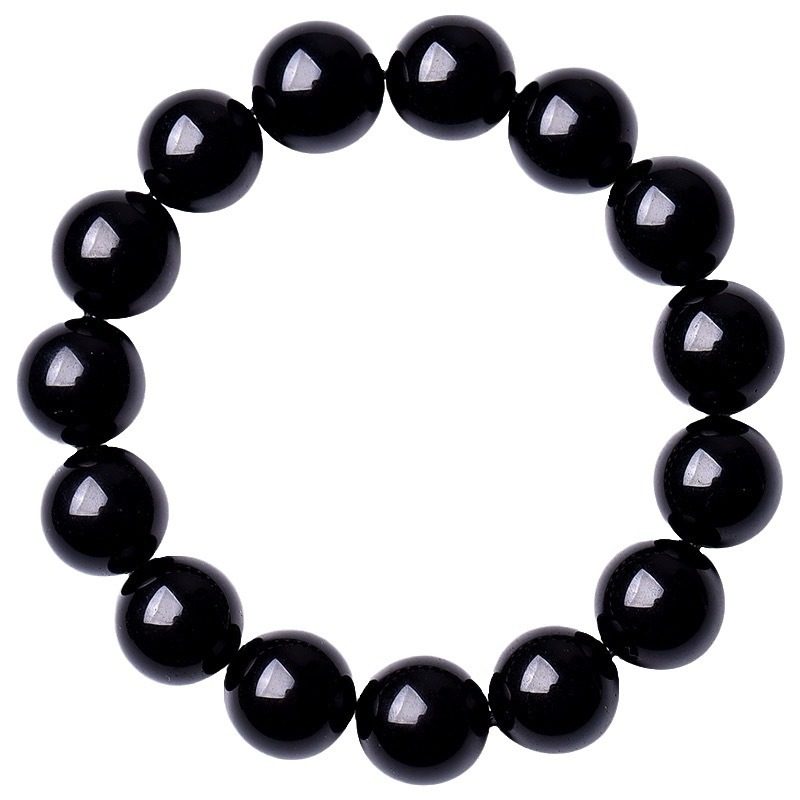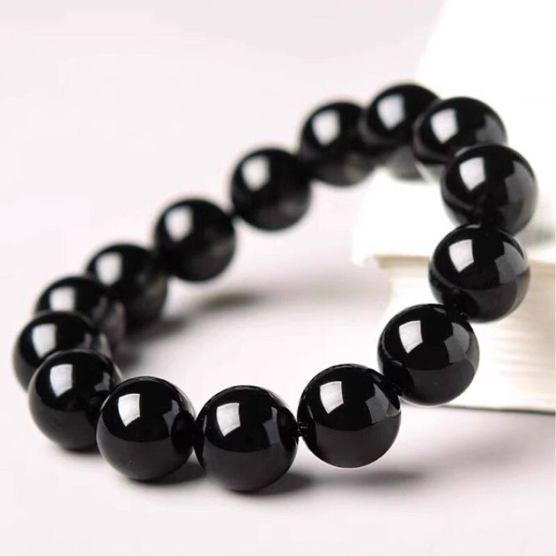 收藏级乌金黑手链天然黑耀石黑色珠子串珠散珠单圈手串男女款