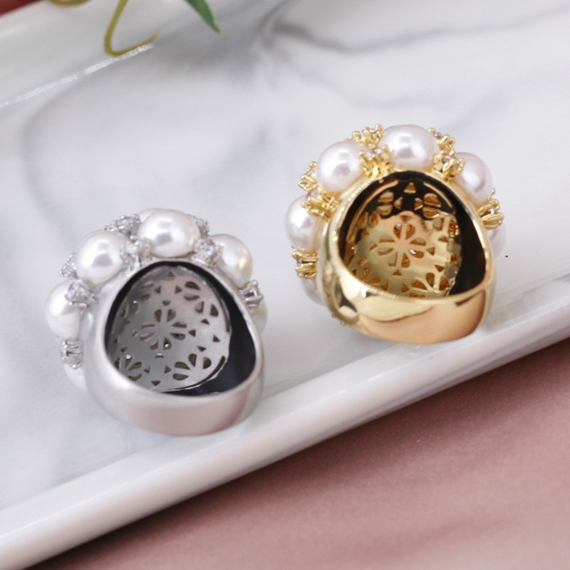 个性复古珍珠满钻戒指气质网红夸张食指戒日韩简约优雅指环耳钉女