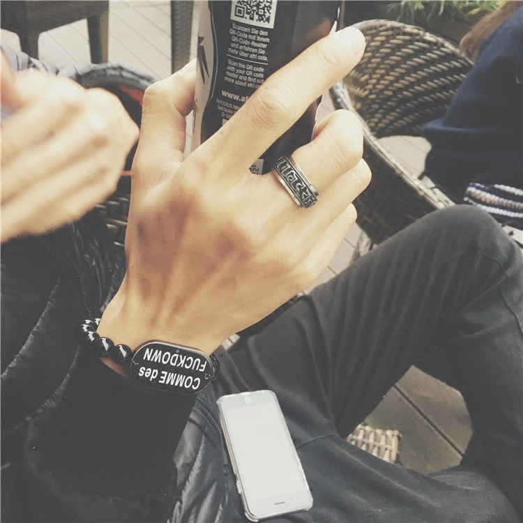 日韩六字真言钛钢转运戒指 男士复古个性情侣食指不掉色指环饰品