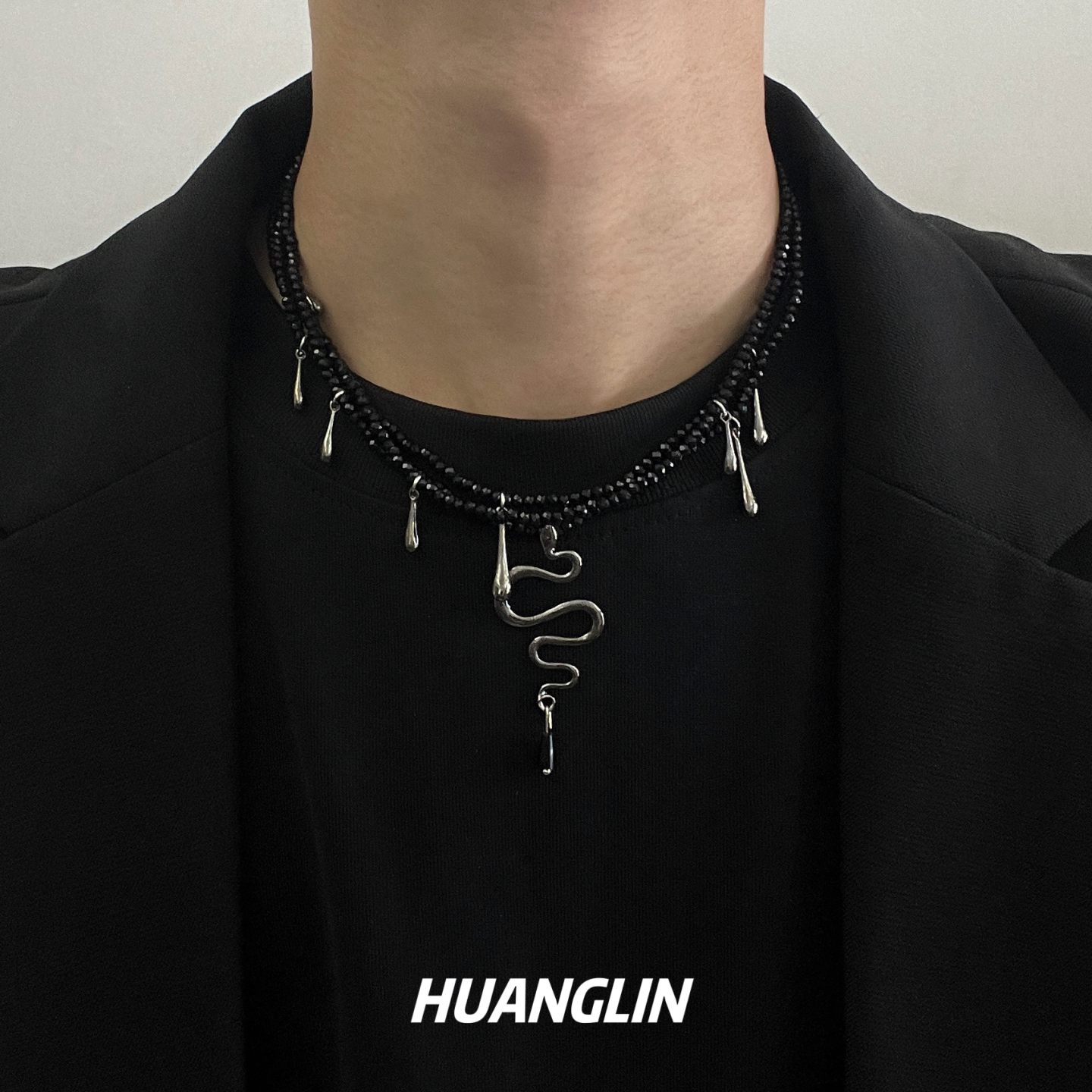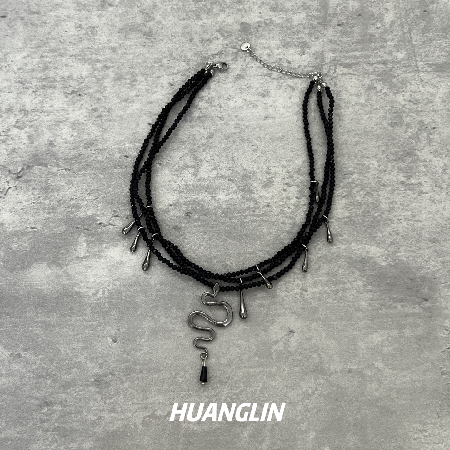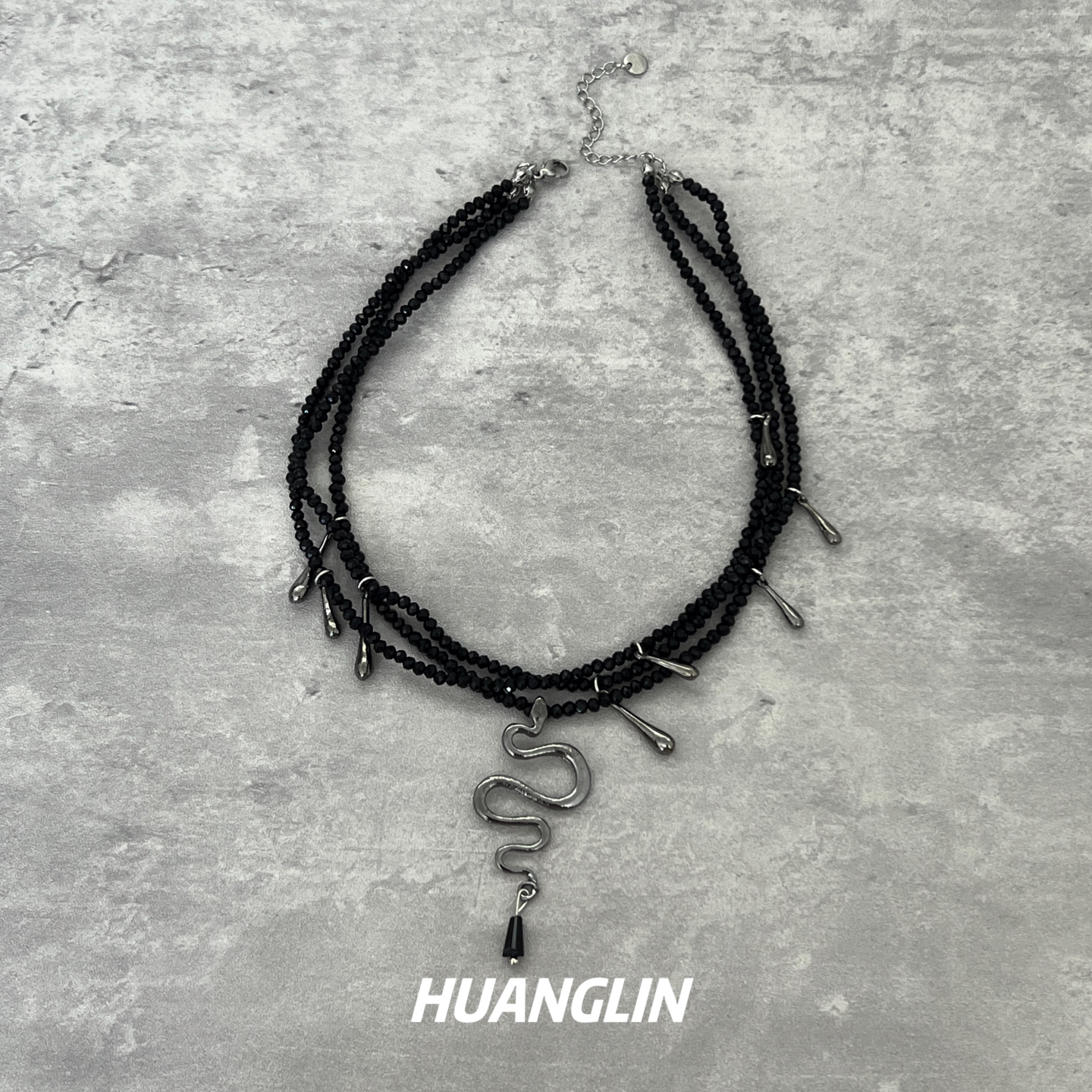 黑色串珠蛇形项链男女朋克哥特风个性冷淡风高级感锁骨链潮酷配饰
