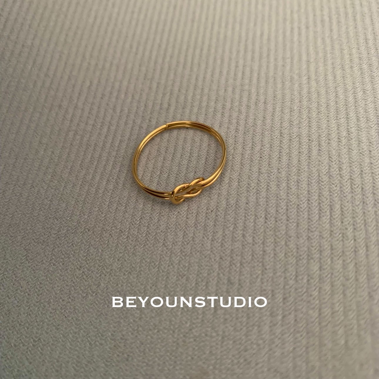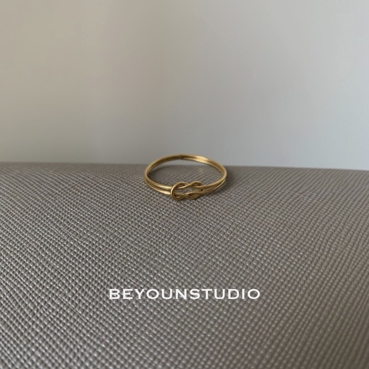 ZUORAN 法式复古轻奢小众莫比乌斯结金色ins钛钢不掉色戒指RF109