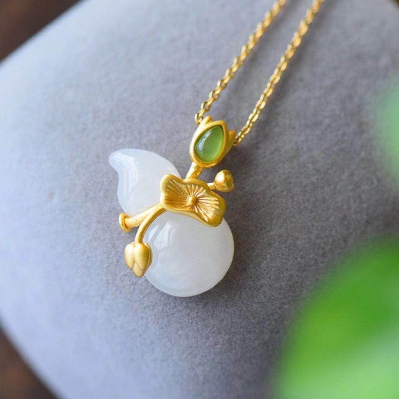 新款白玉葫芦荷花套链女款气质款百搭款吊坠宫廷时尚葫芦项链