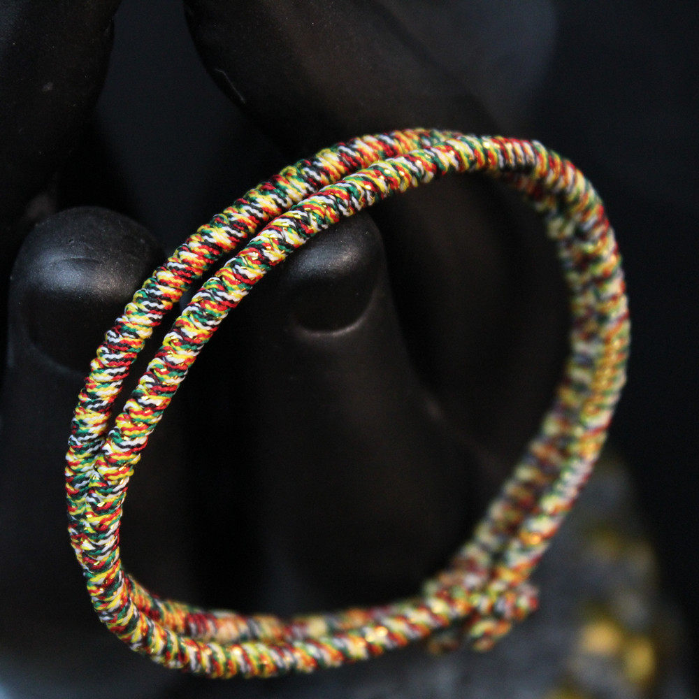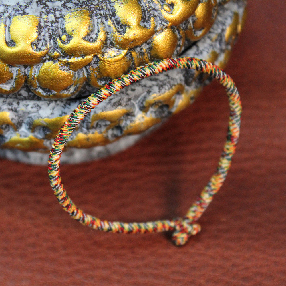民族风 3mm五彩黄线情侣款纯手工编织 九乘金刚结红绳手链