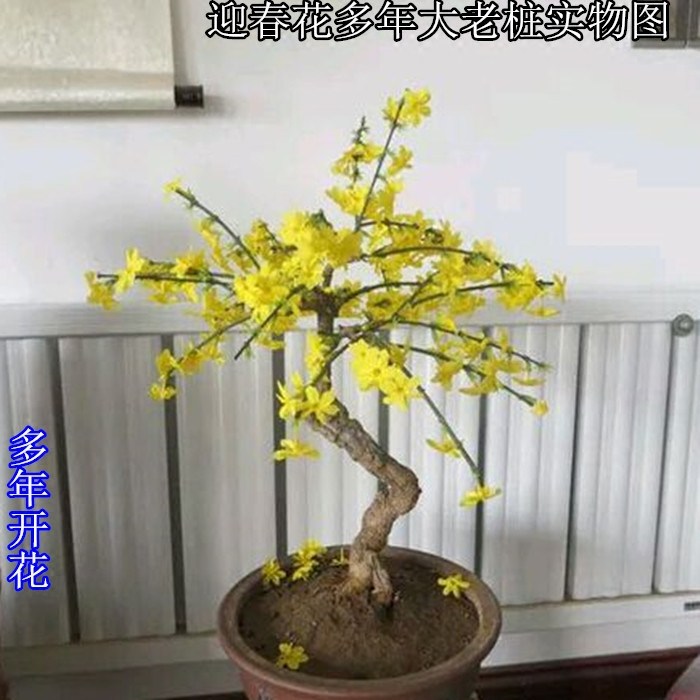迎春花盆栽精品提根造型盆景树桩苗小叶虎蹄迎春室内盆景绿植盆栽