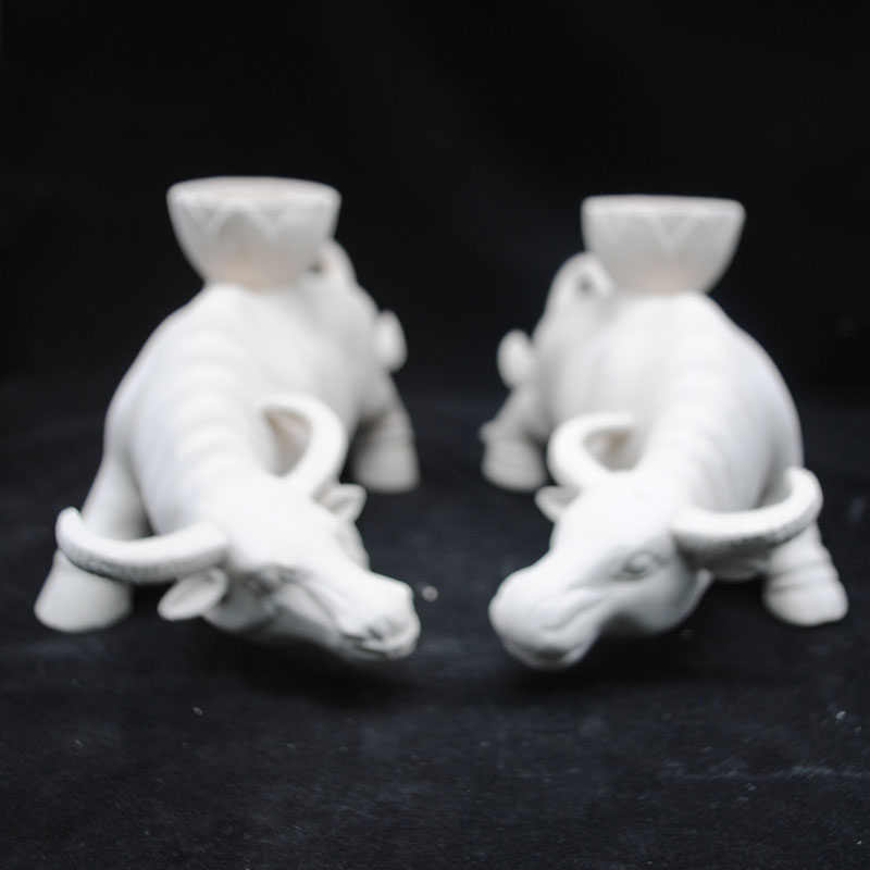 灯台对牛陶瓷石膏模具注浆成型雕塑制作素胎烧制白色素坯居家摆件