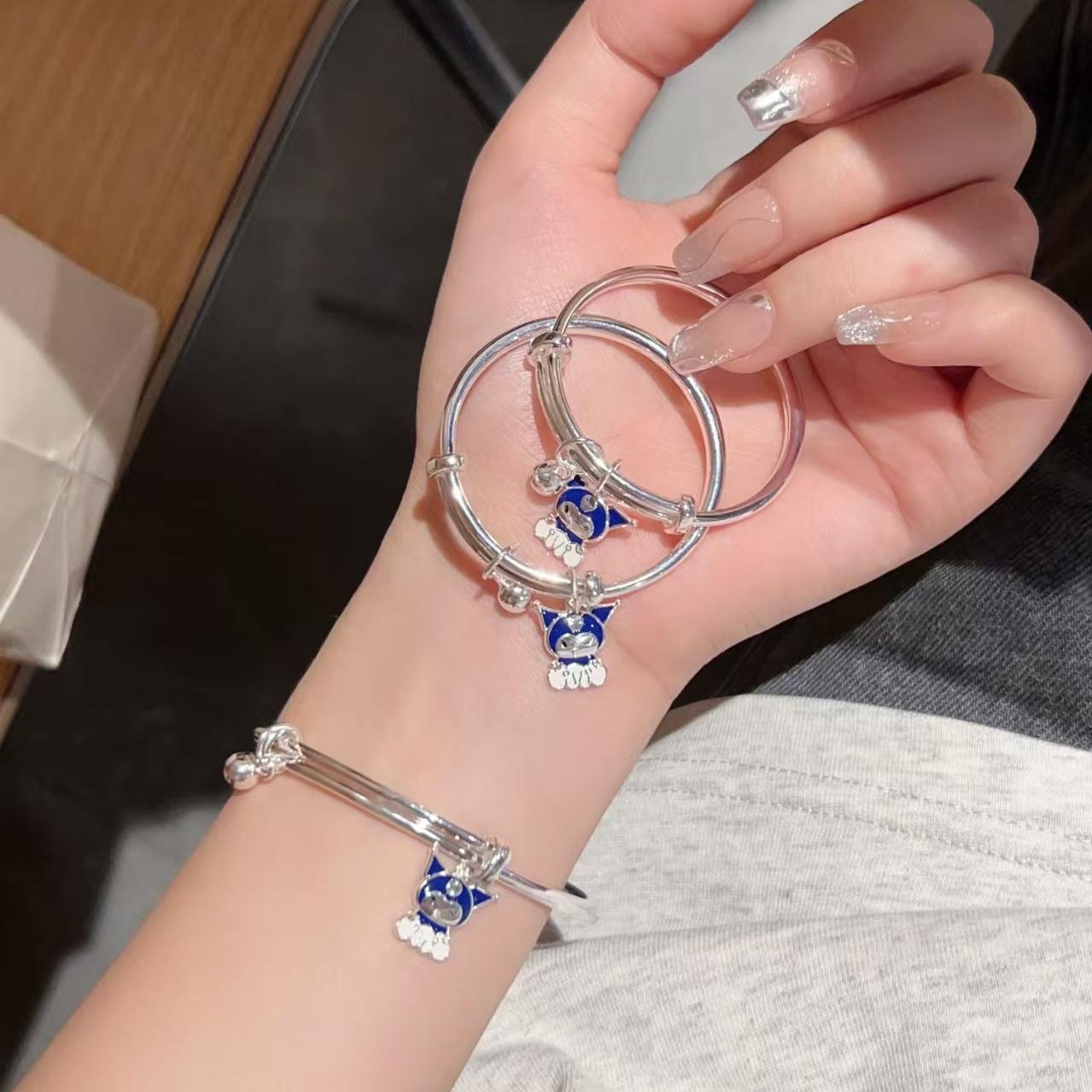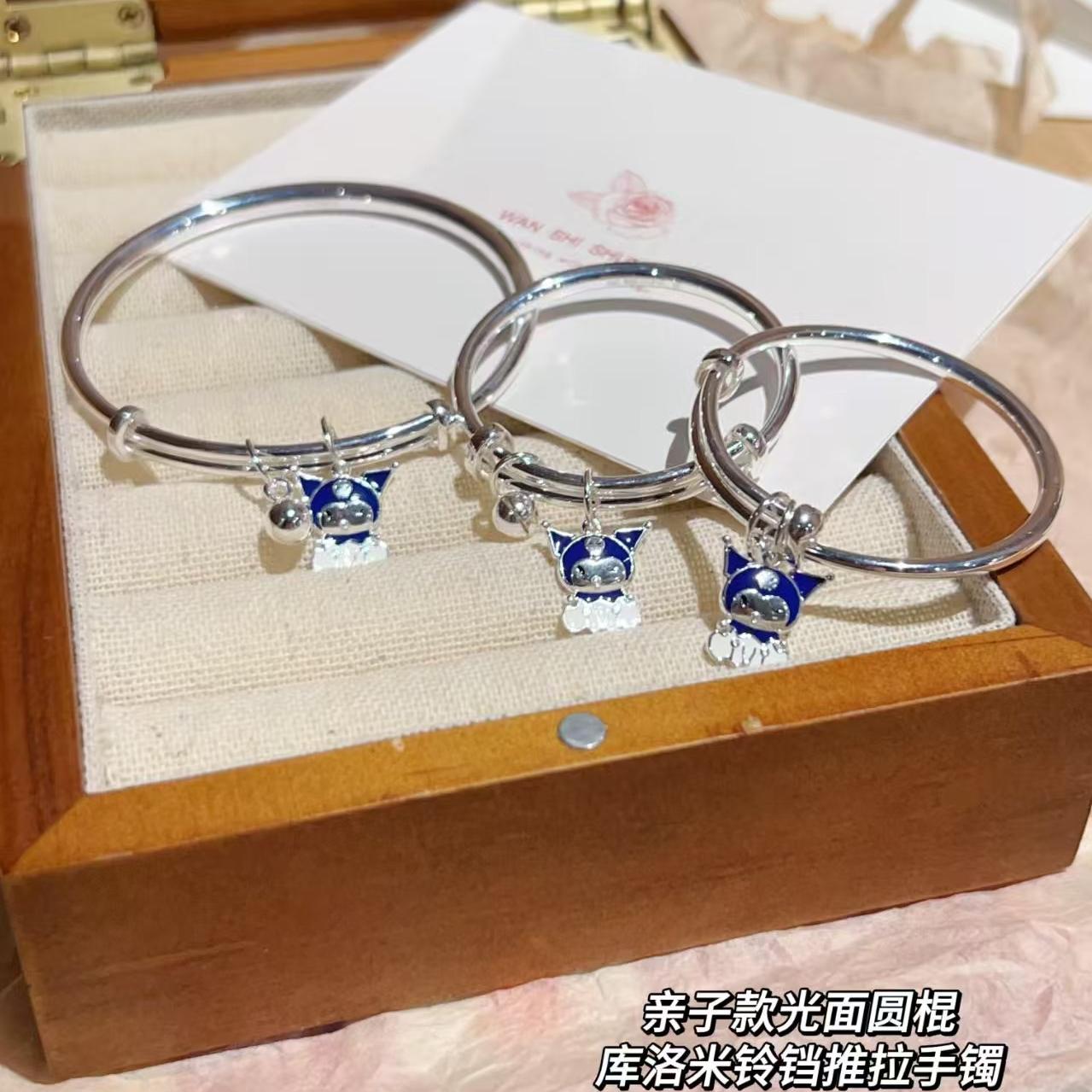 香港正生纯银99大小童足银手镯学生生日女铃铛推拉酷库洛米亲子款