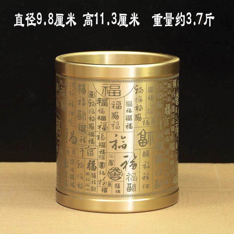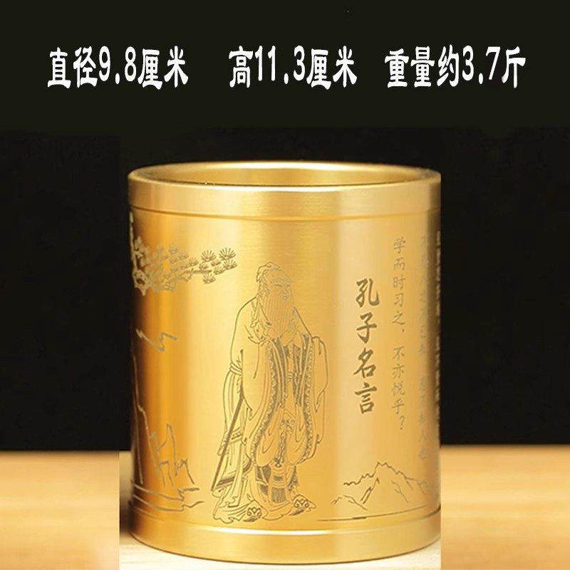 黄铜大号铜实心笔筒大展宏图书房桌面办公装饰摆件家居用简约送礼