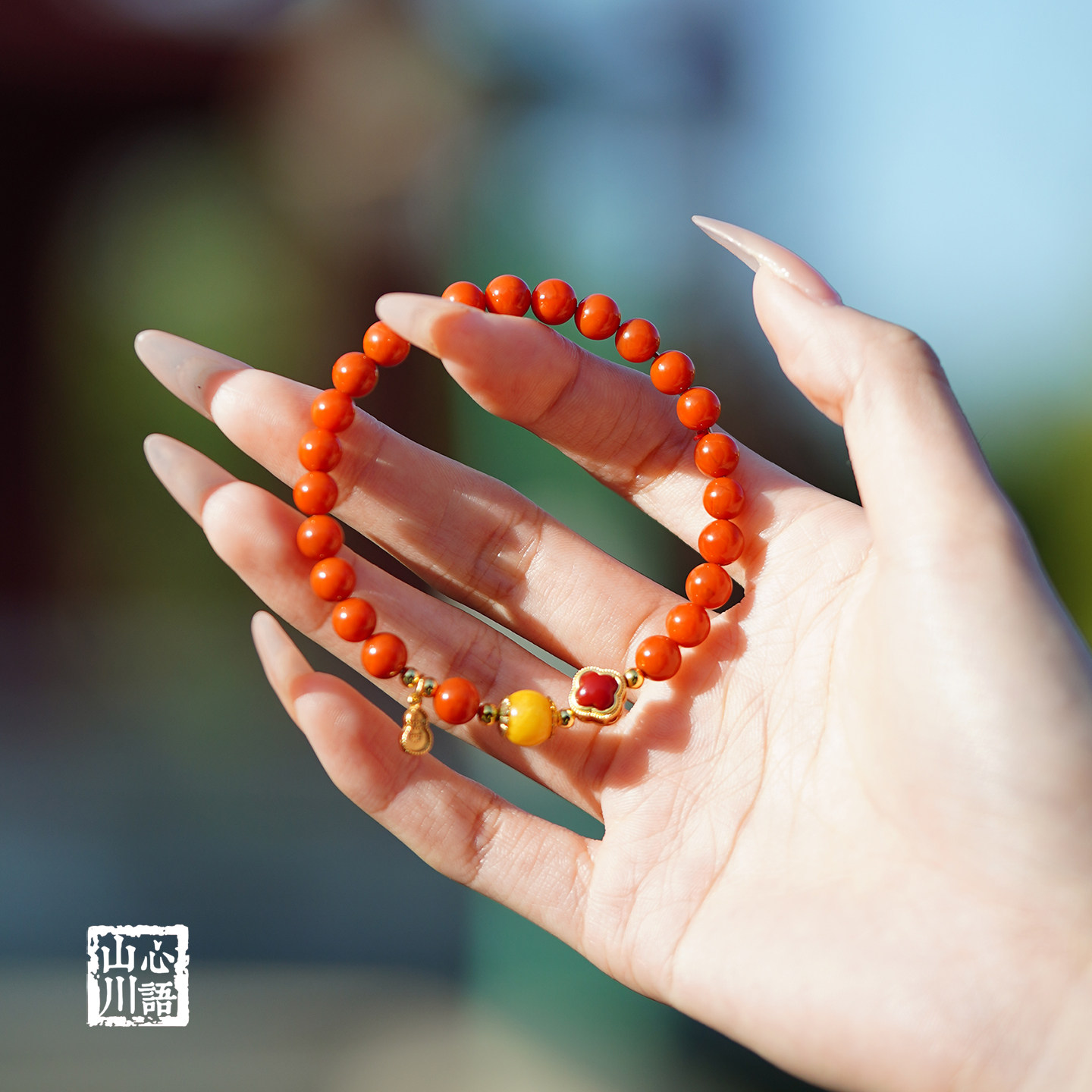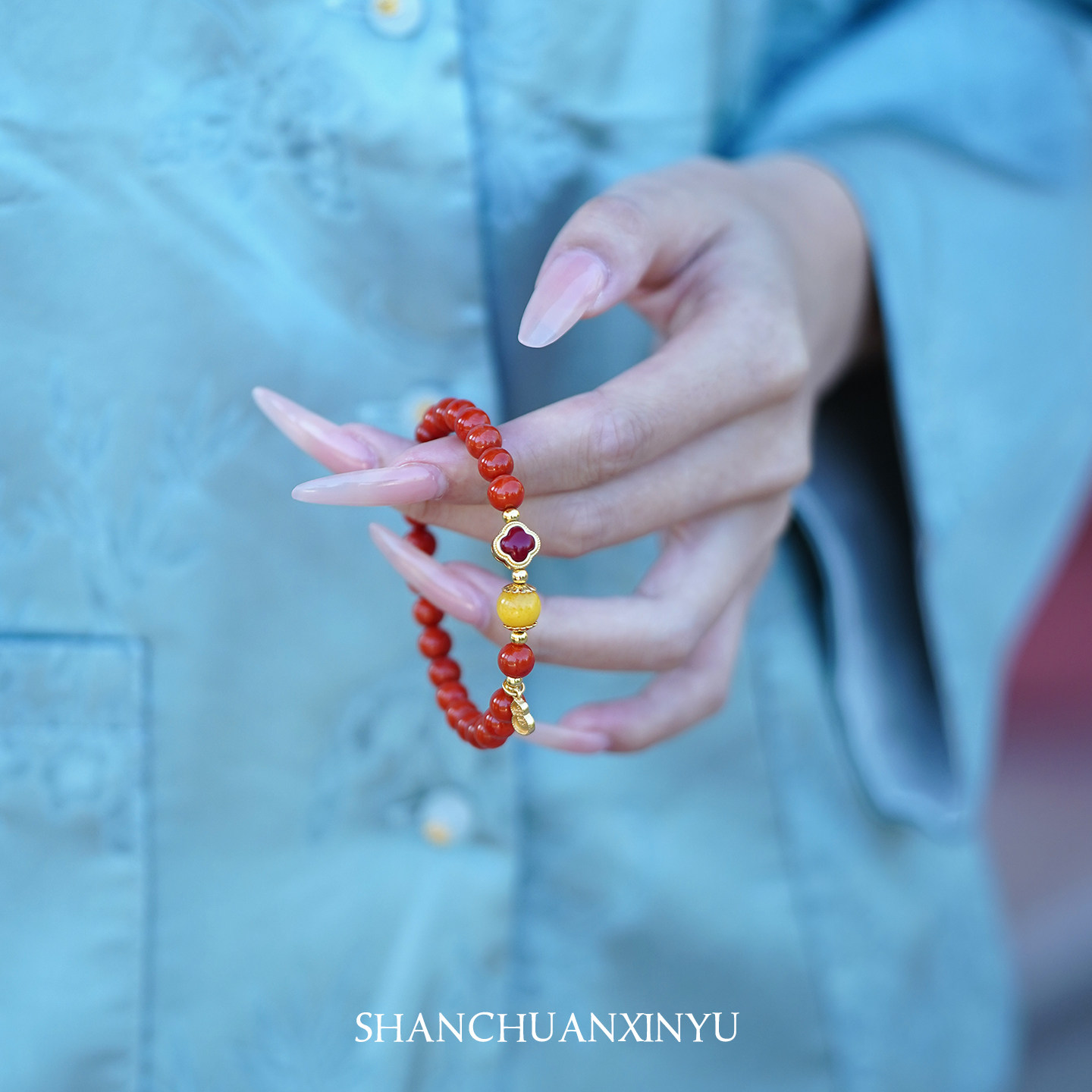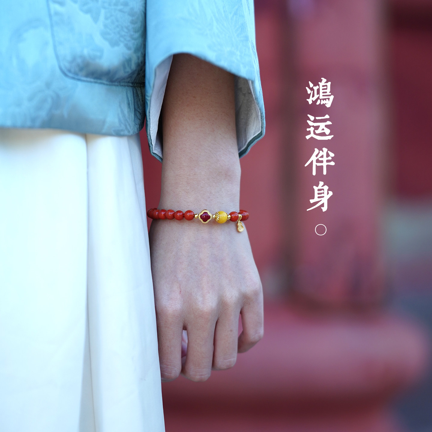 南红手串红色玛瑙本命年四叶草手链女满肉天然蜜蜡保山火焰纹宝石