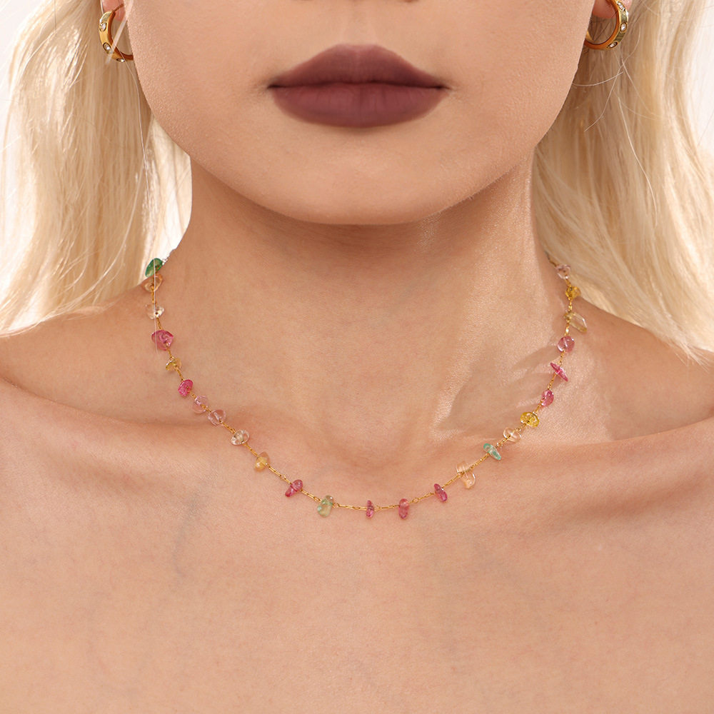 多巴胺水晶石钛钢链条锁骨项链手链ins风小众甜美风气质高端套装