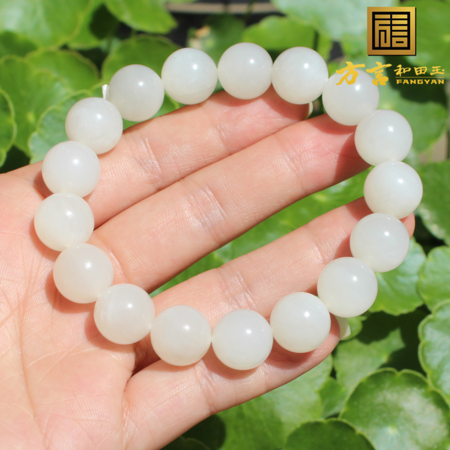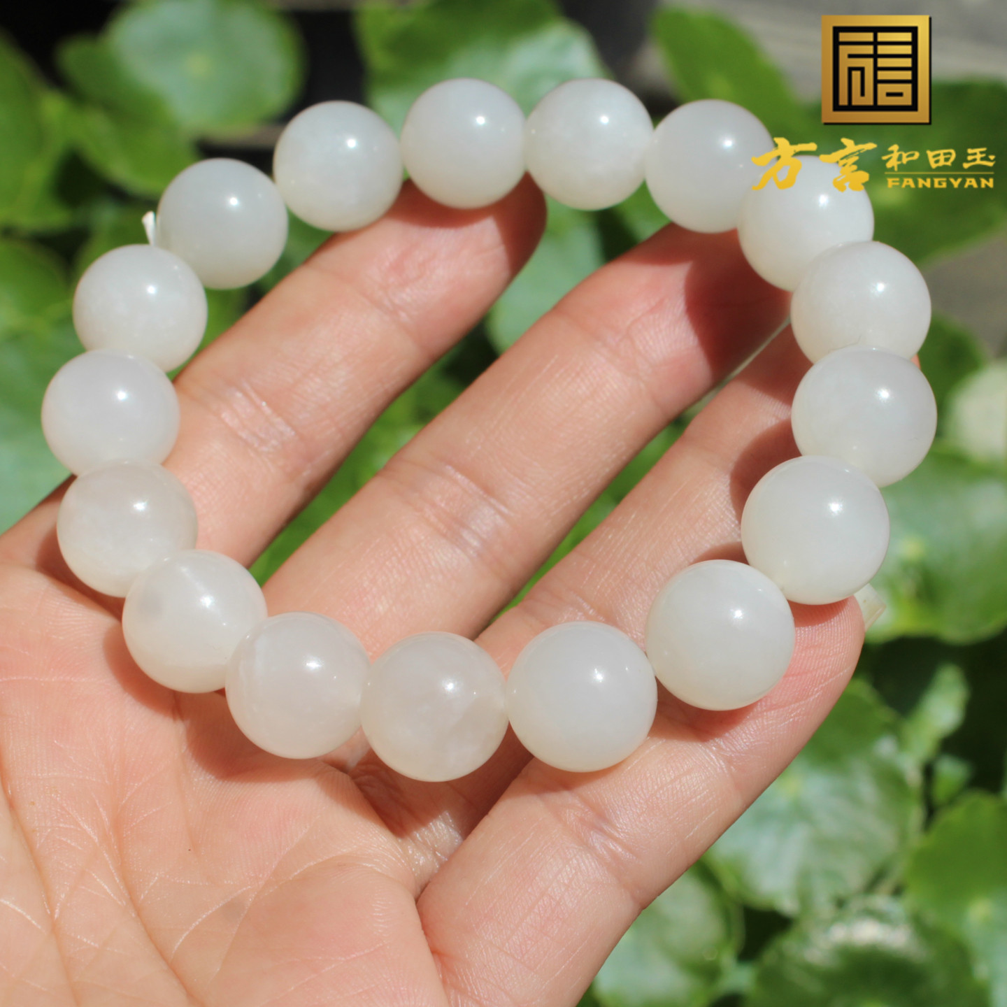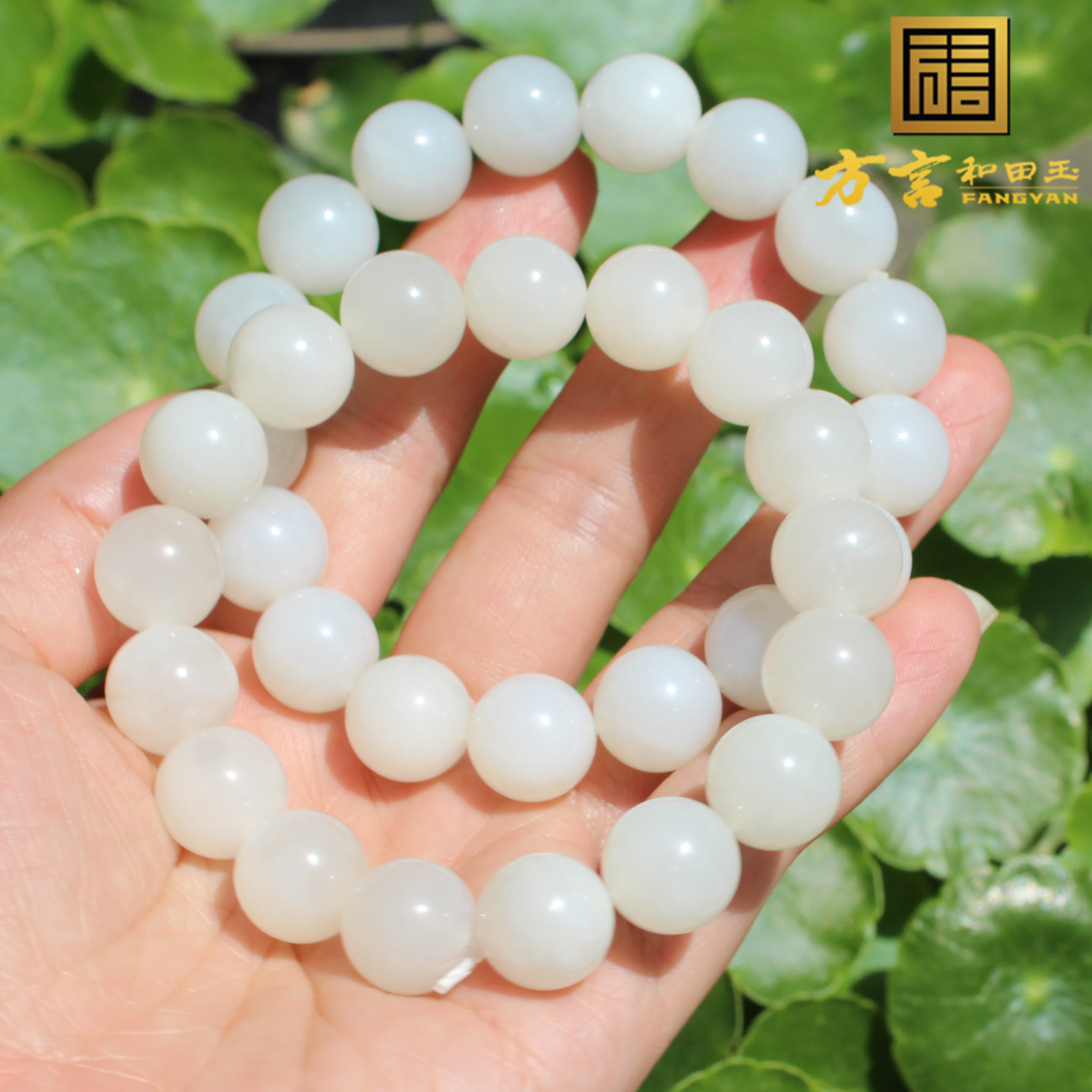 亏麻了方言和田玉青海老坑冰底细腻羊脂白玉卡12mm圆珠手链手串A6