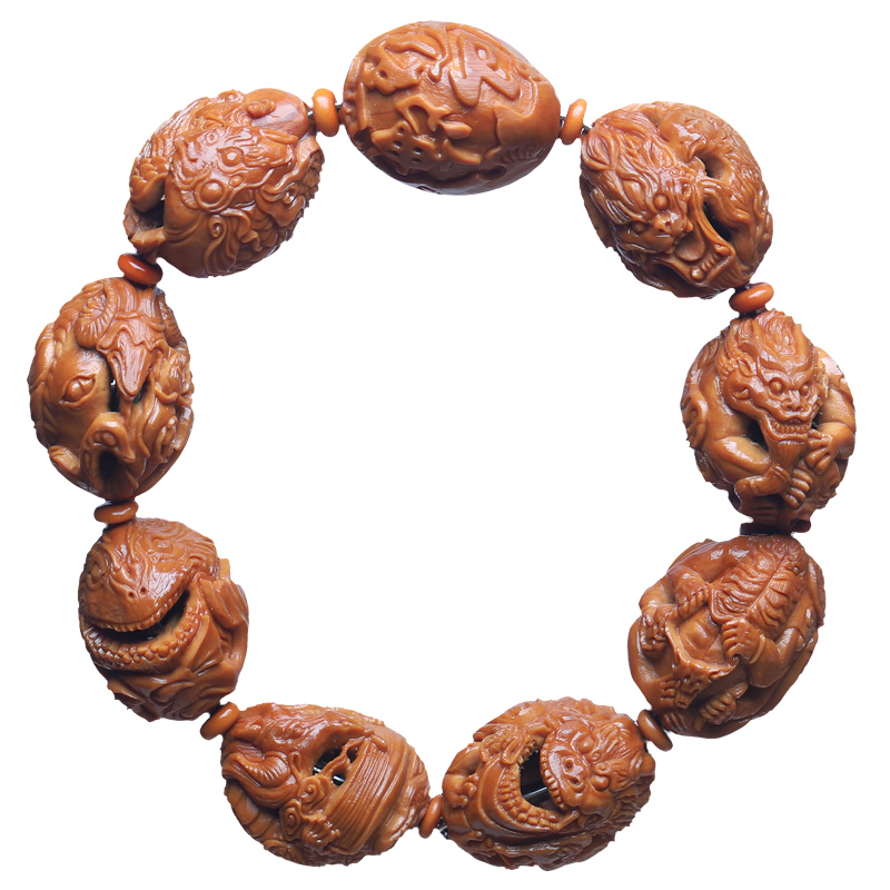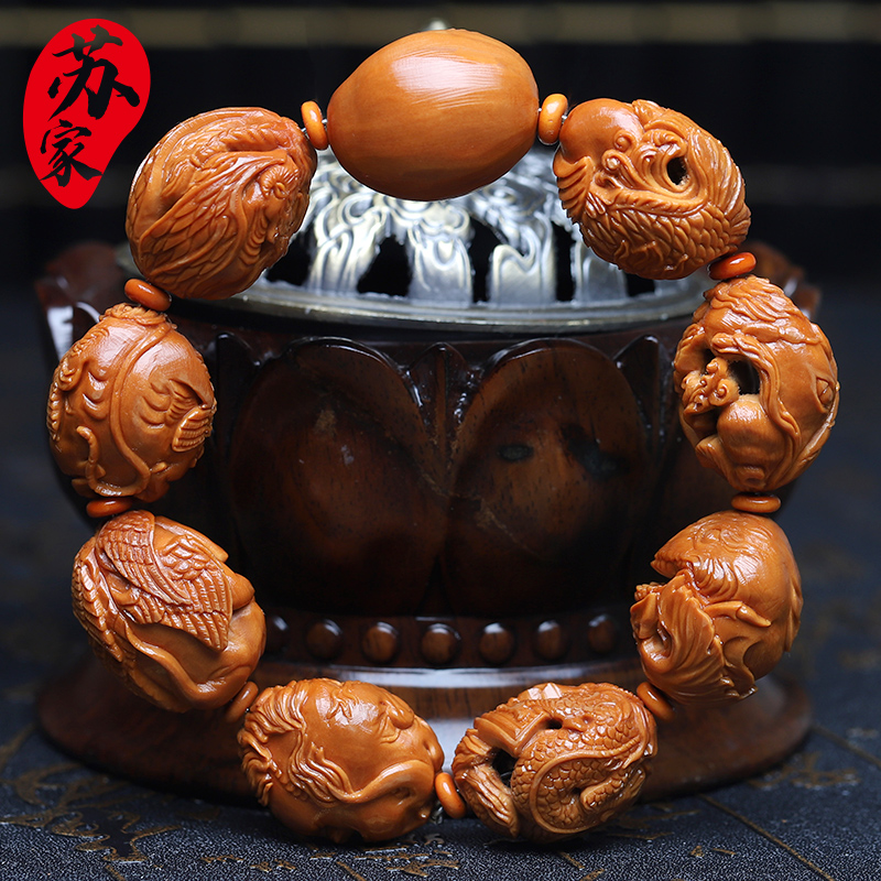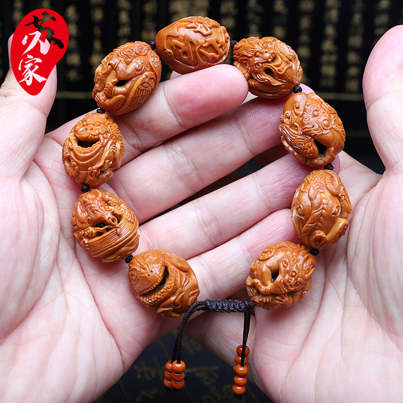 橄榄核手串上古神兽山海经核雕手工镂空雕刻异兽文玩手把件手链