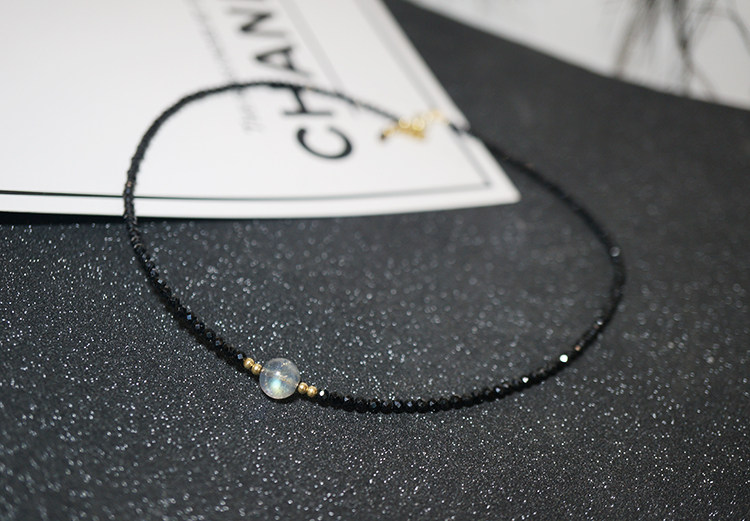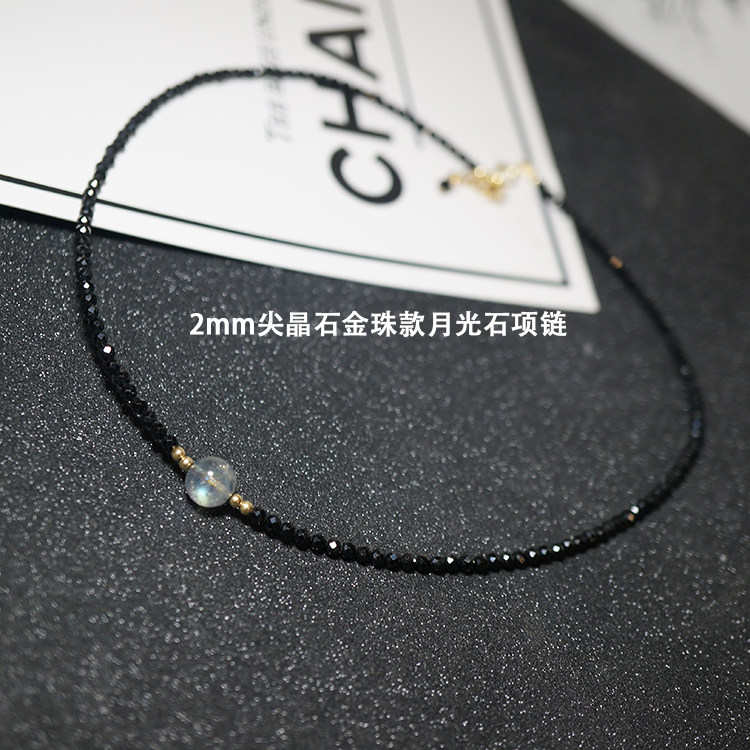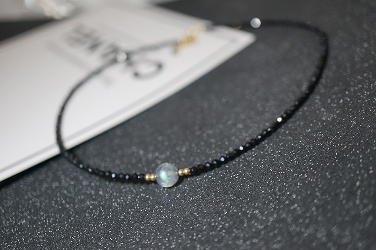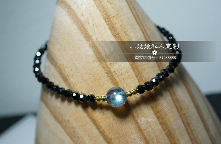 守护石月光石 天然黑色尖晶石手链美国进口14K包金超闪纤细手链女