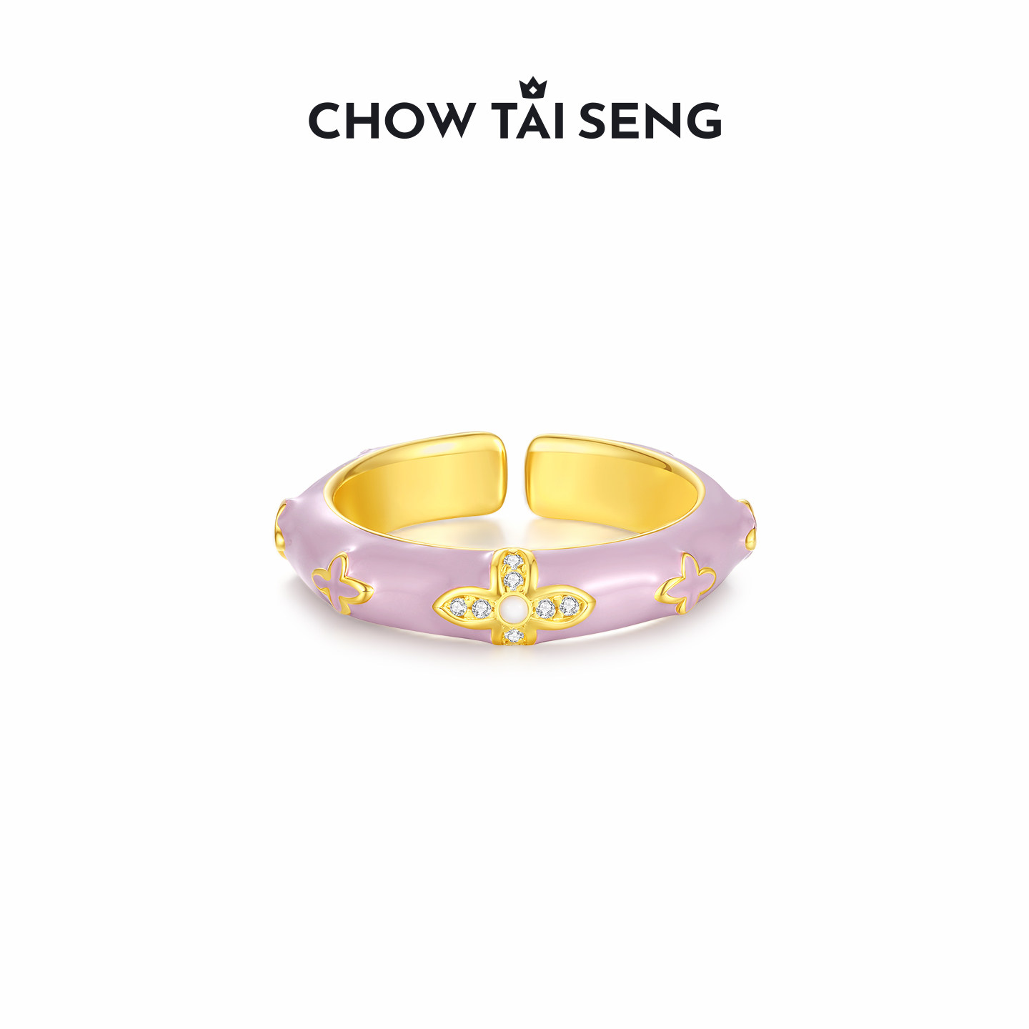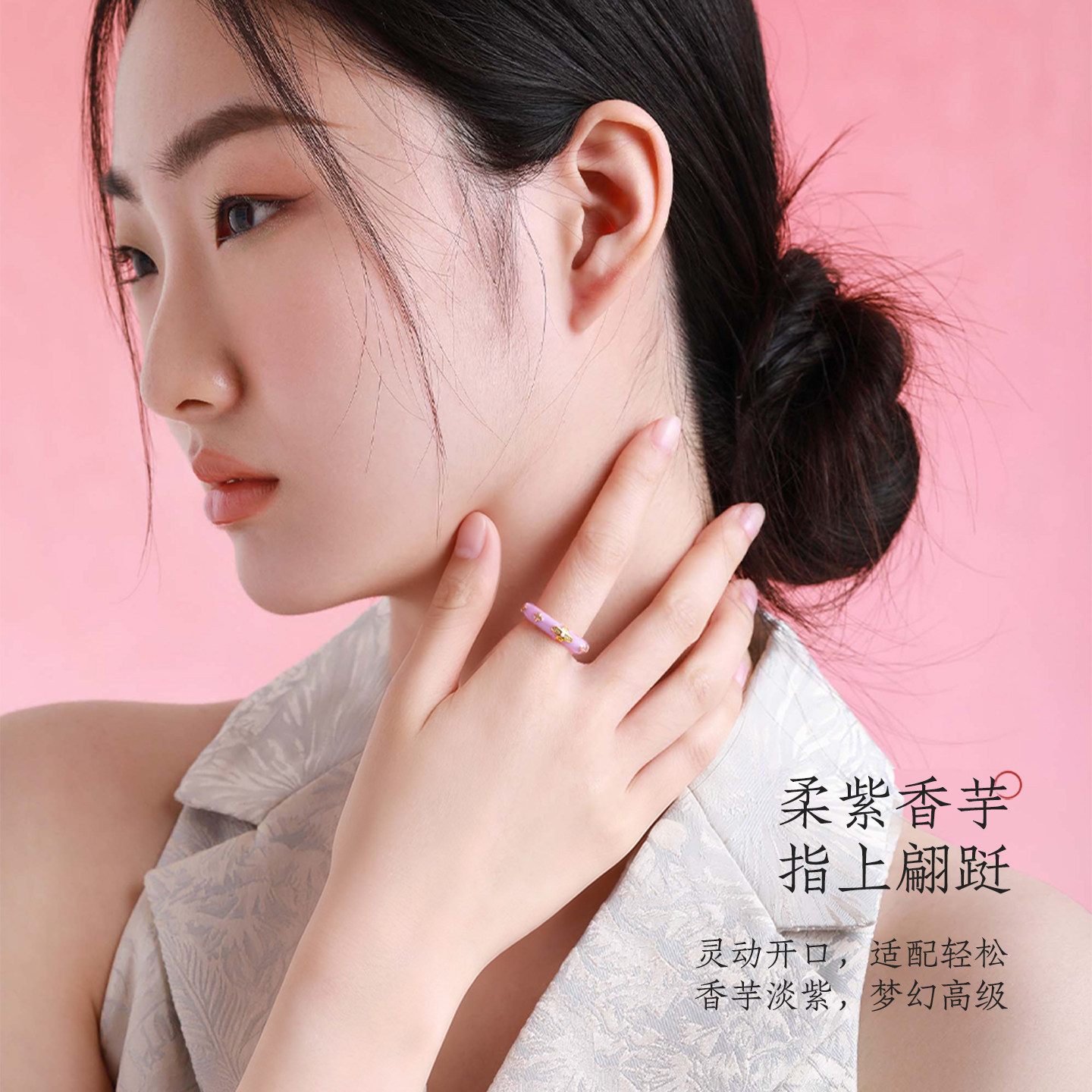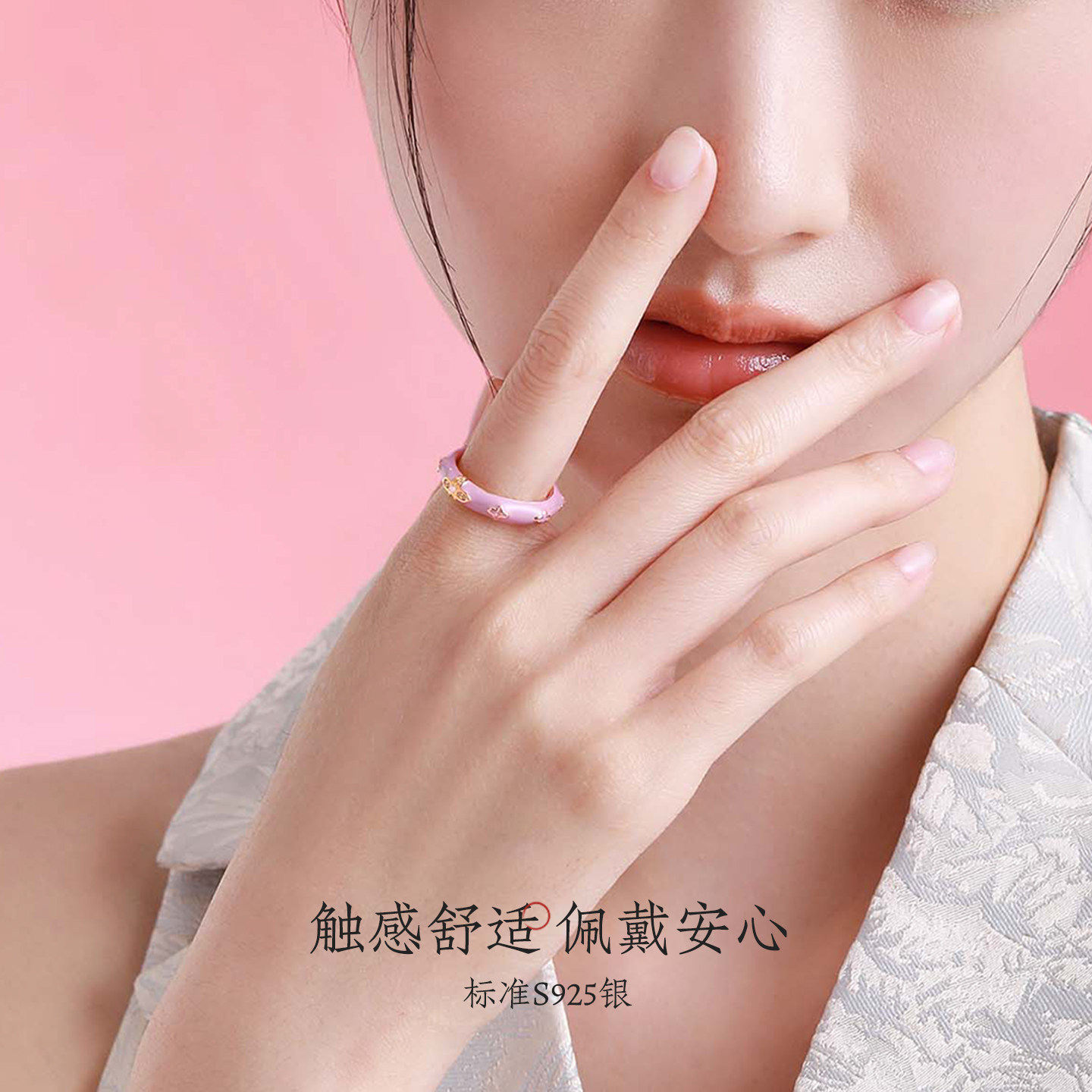 周大生珐琅戒指纯银精致高级感紫色开口戒食指戒生日礼物送女友
