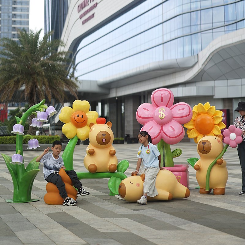 网红卡皮巴拉水豚雕塑商场旺铺引流游乐园打卡合影卡通Y玻璃钢摆