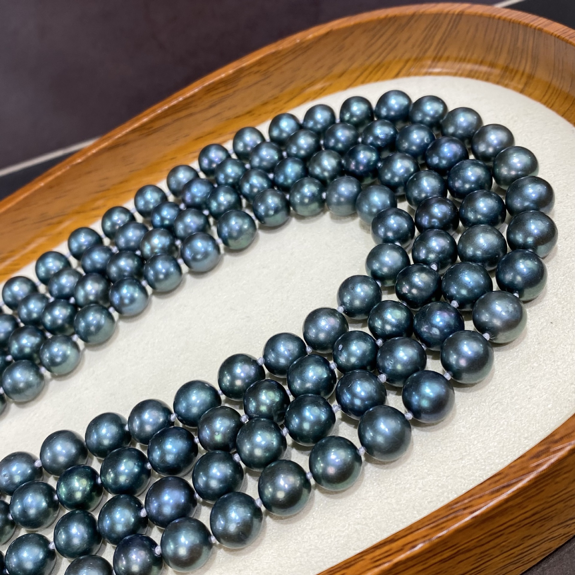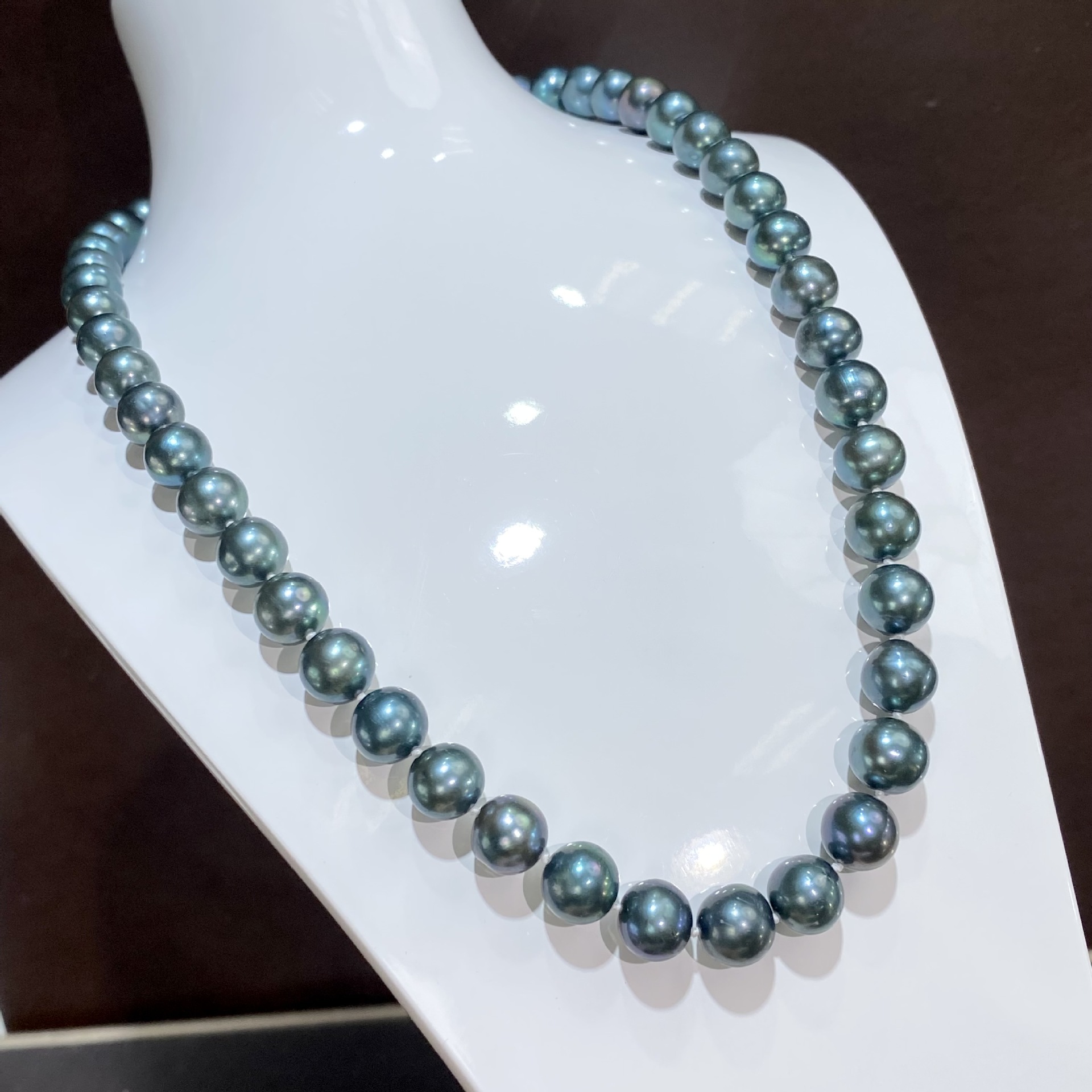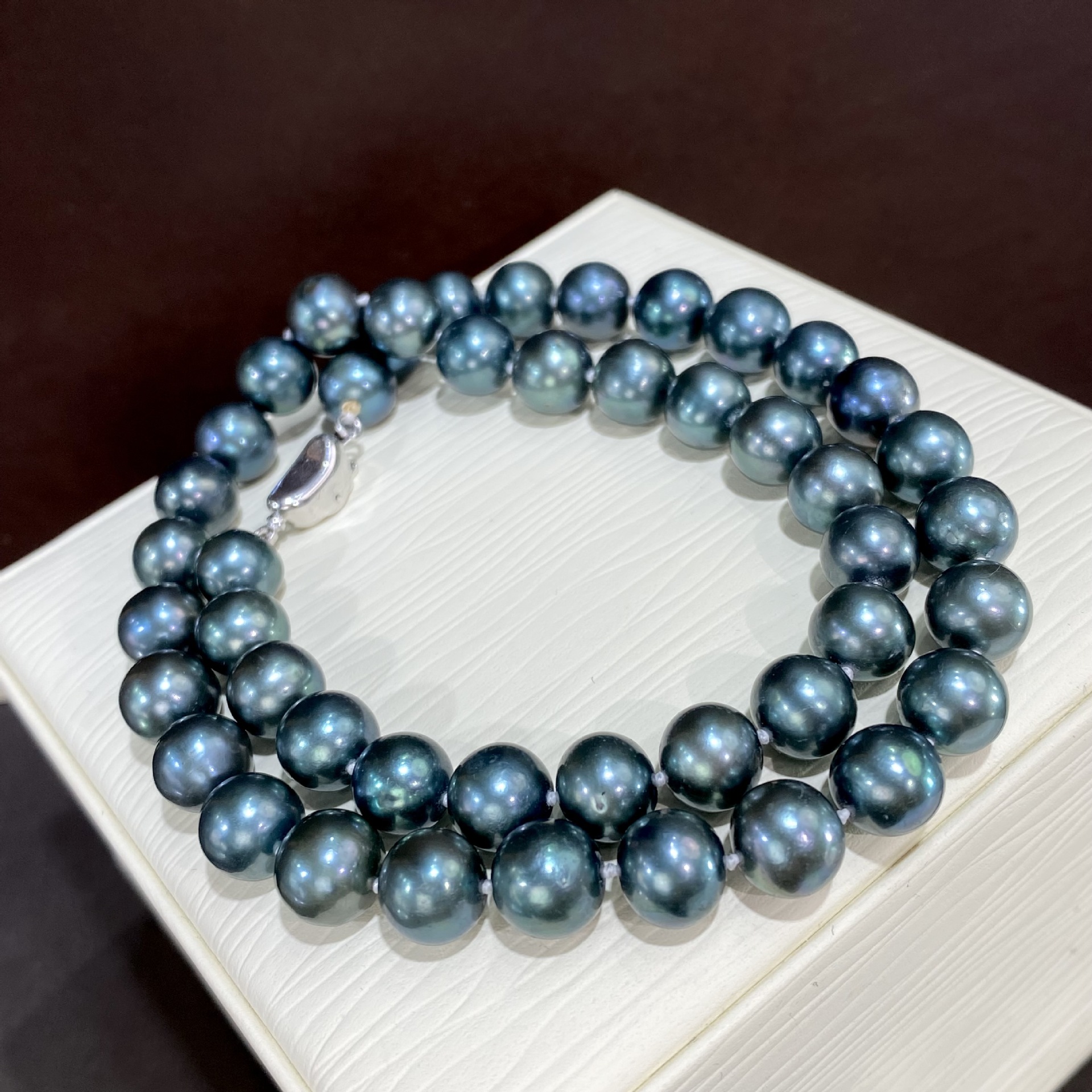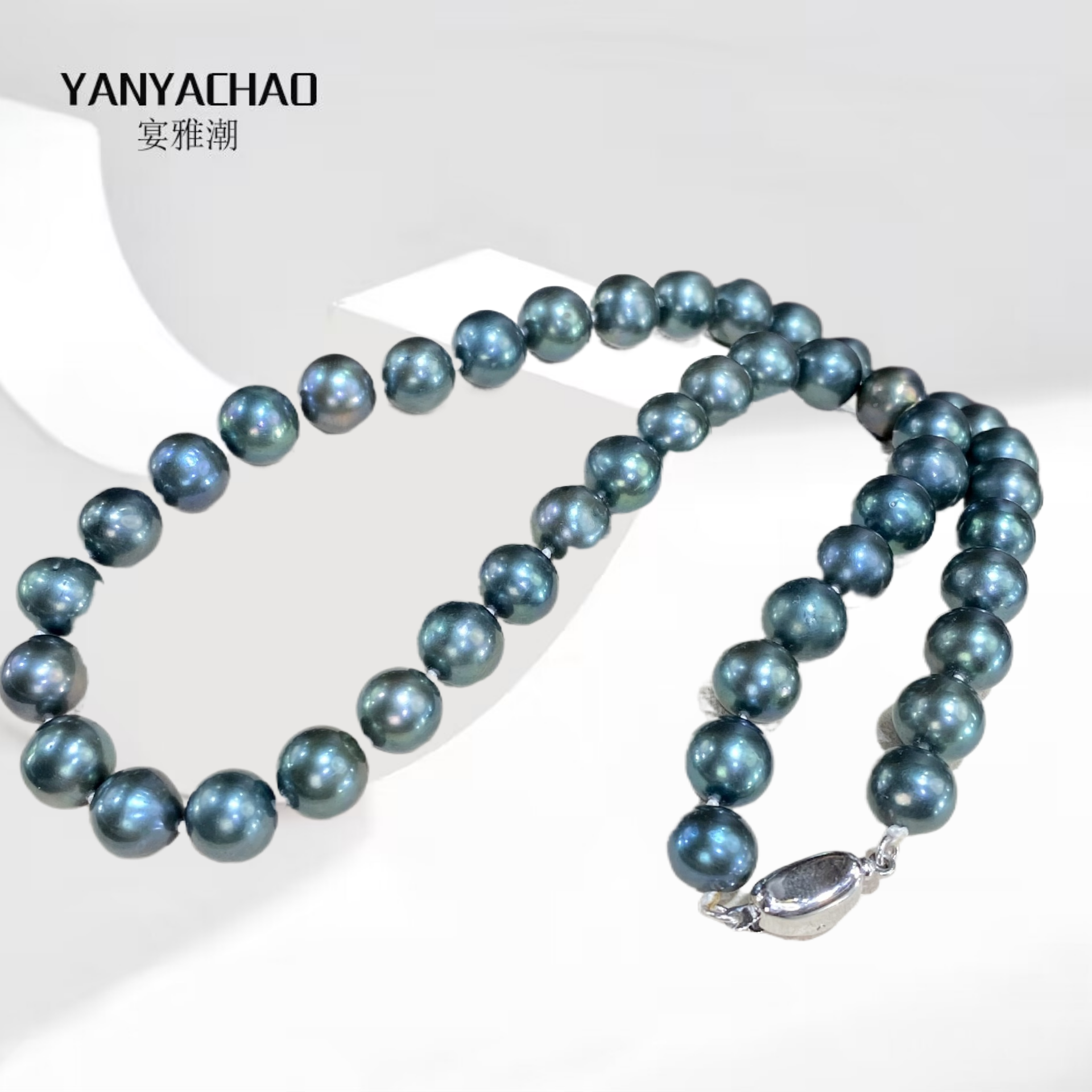 经典款孔雀绿色淡水大溪地黑珍珠项链强光女颈链百搭送礼有面子