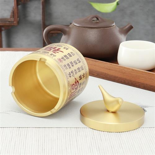 小鸟烟灰缸ins高级感创意纯黄铜家用车载带盖防飞灰烟灰缸