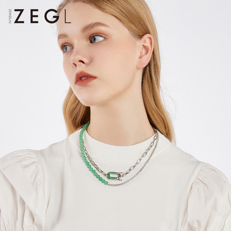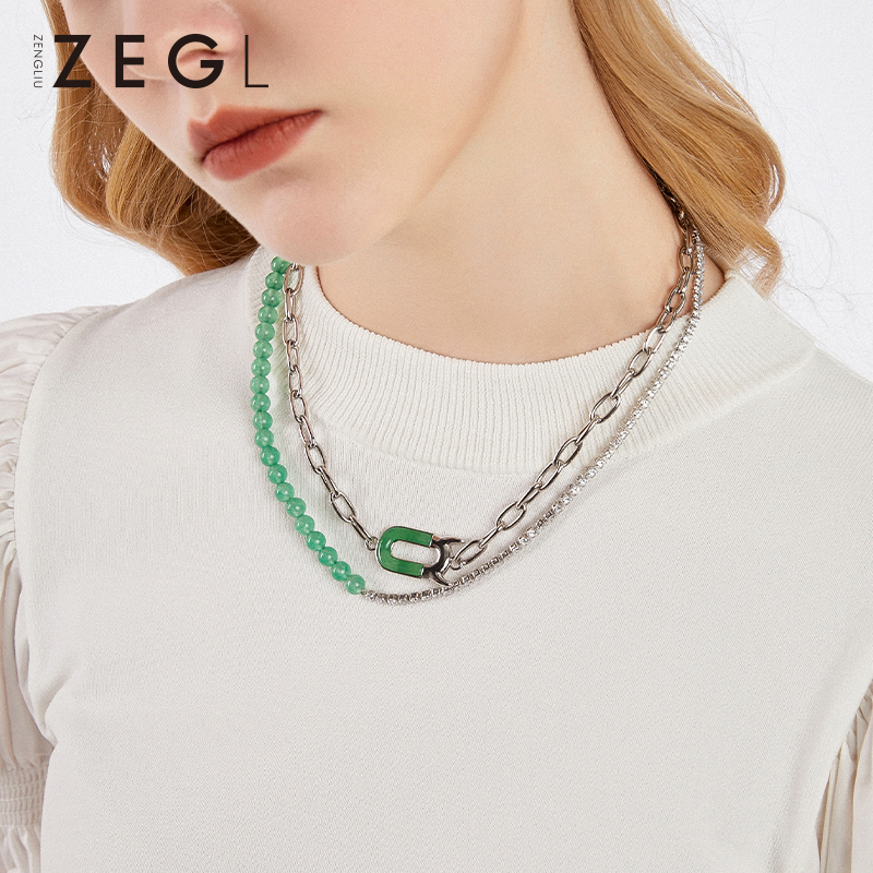 ZEGL设计师本命年牛玉石项链女轻奢小众双层锁骨链个性网红配饰品